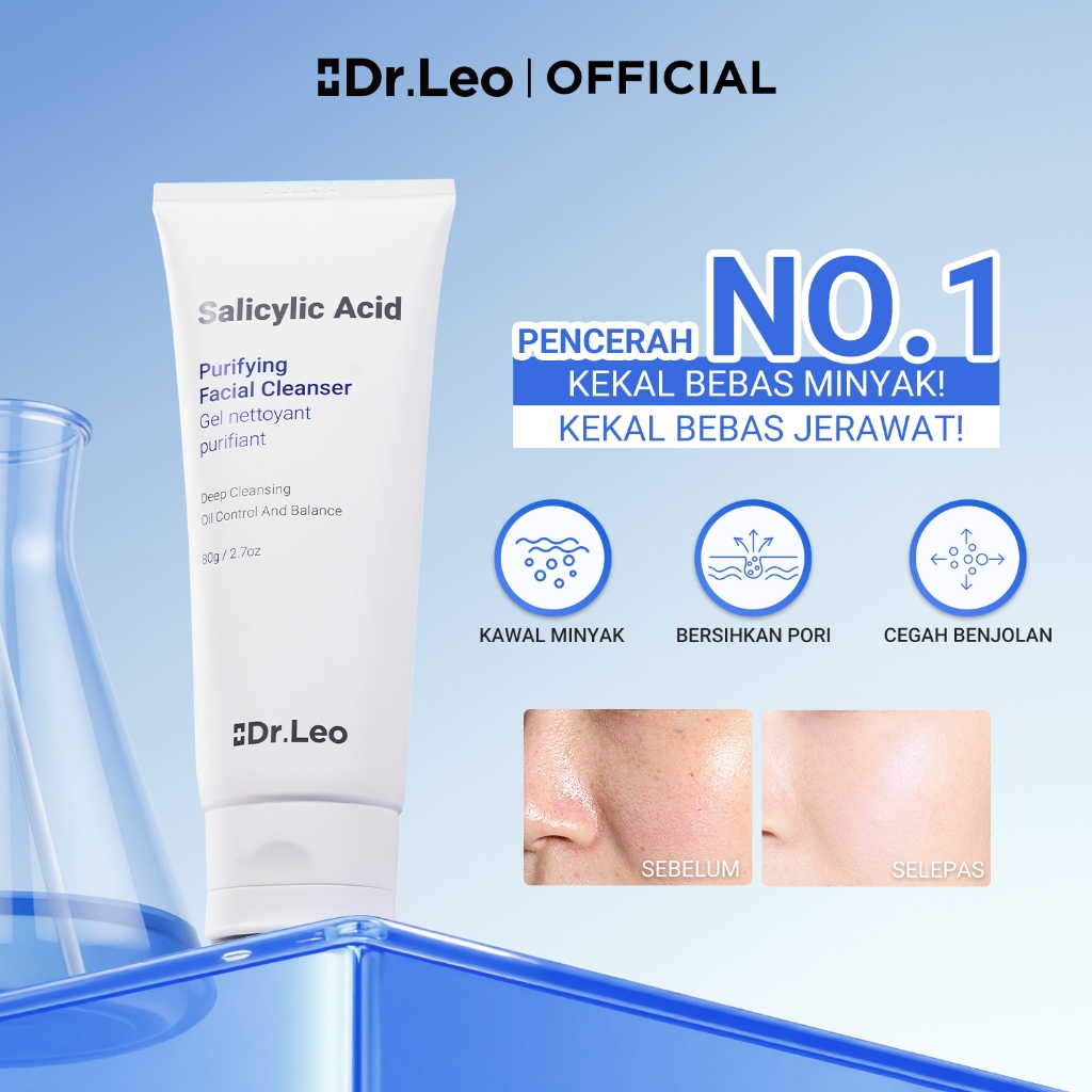 Dr.Leo Salicylic Acid Purifying Facial Cleanser Soothing Oil Control Cream Cleanser Gentle Cleansing Acne Prevention Facial Wash Skincare for All Skin Pencuci Muka Asid Salisilik Kawal Minyak