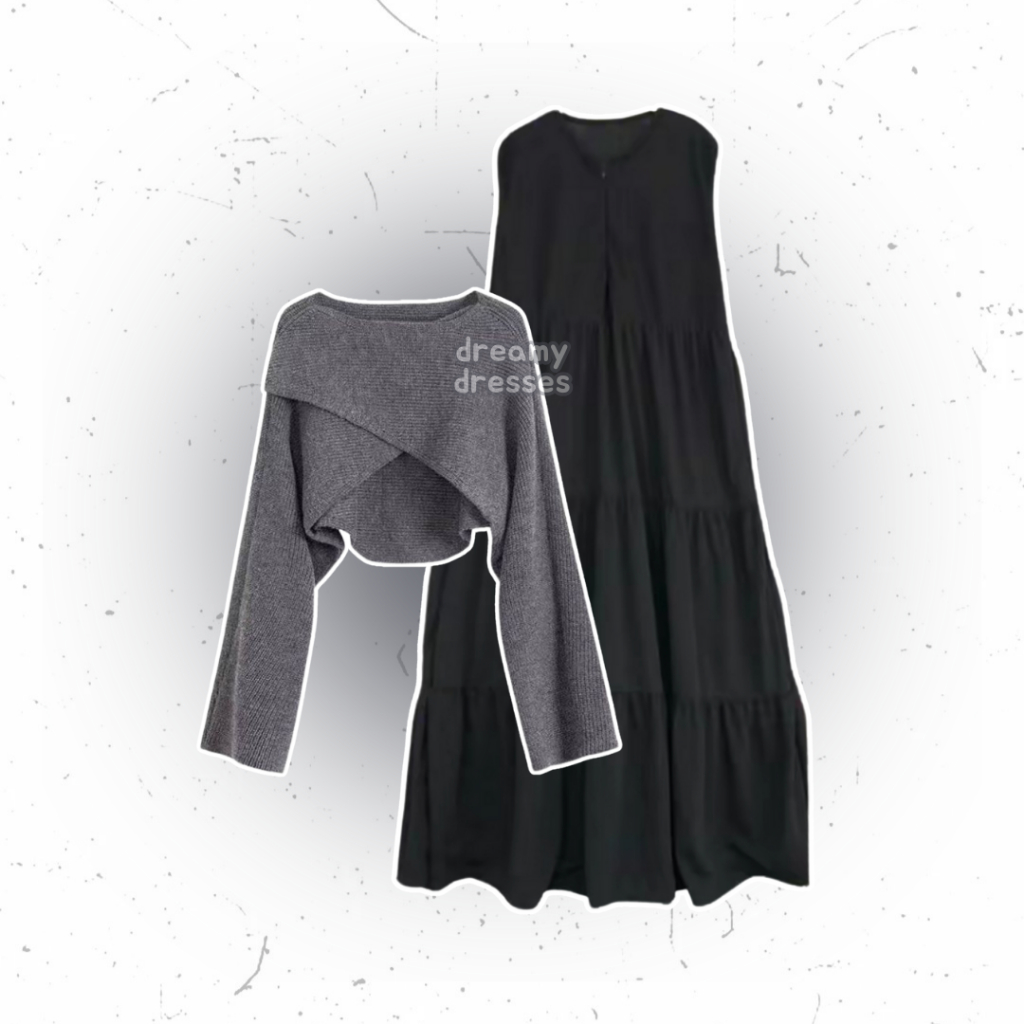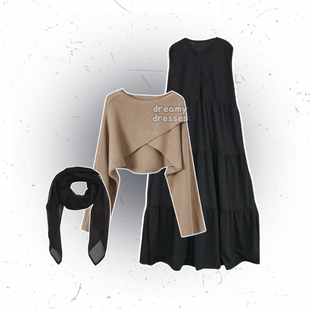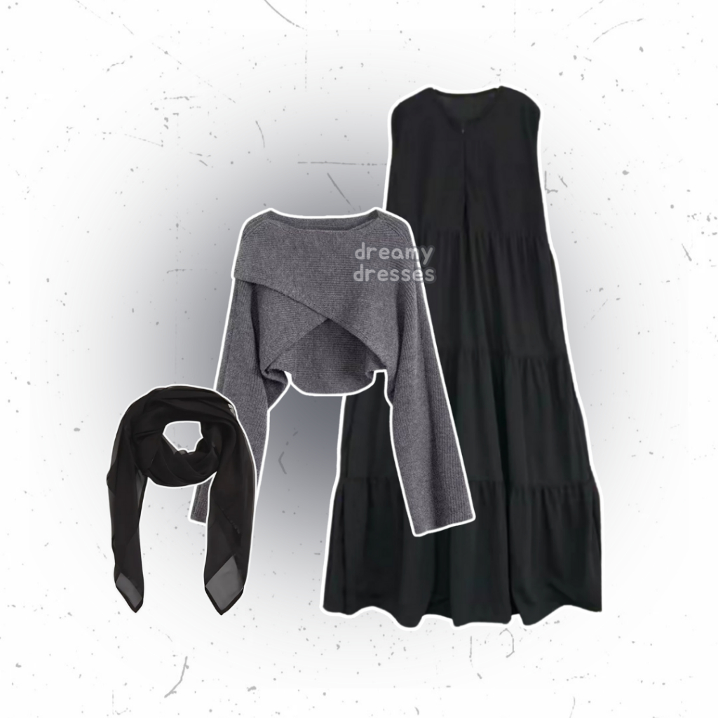 Dreamy - 3in1 Trendy Teen Outfit | Hijab, Top, Dress | Stylish Simple Teenage Outfit Set 306