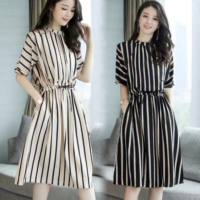 大码连衣裙 dress for women summer new Women dress causal baju dress woman stripe dress ladies dress 连身裙