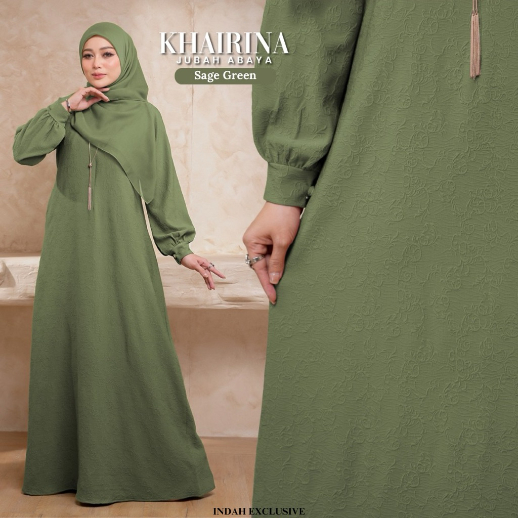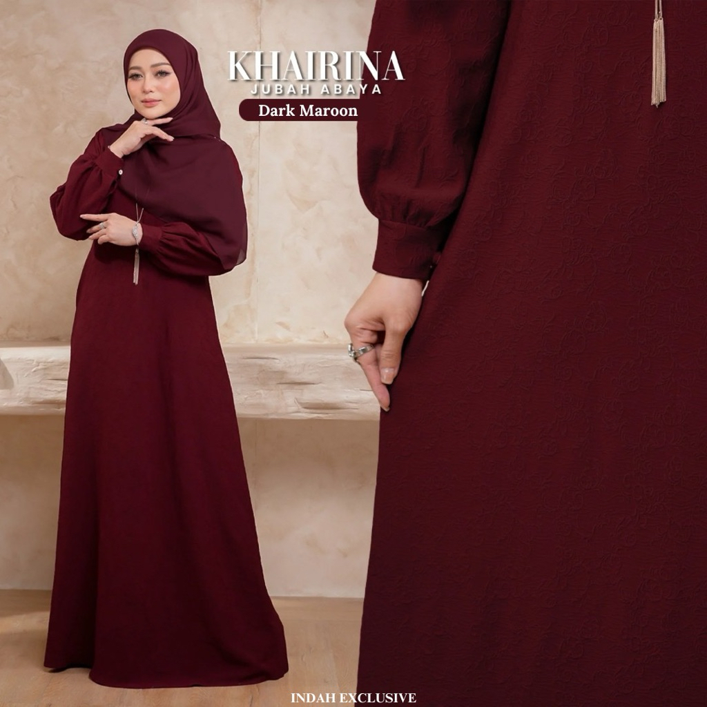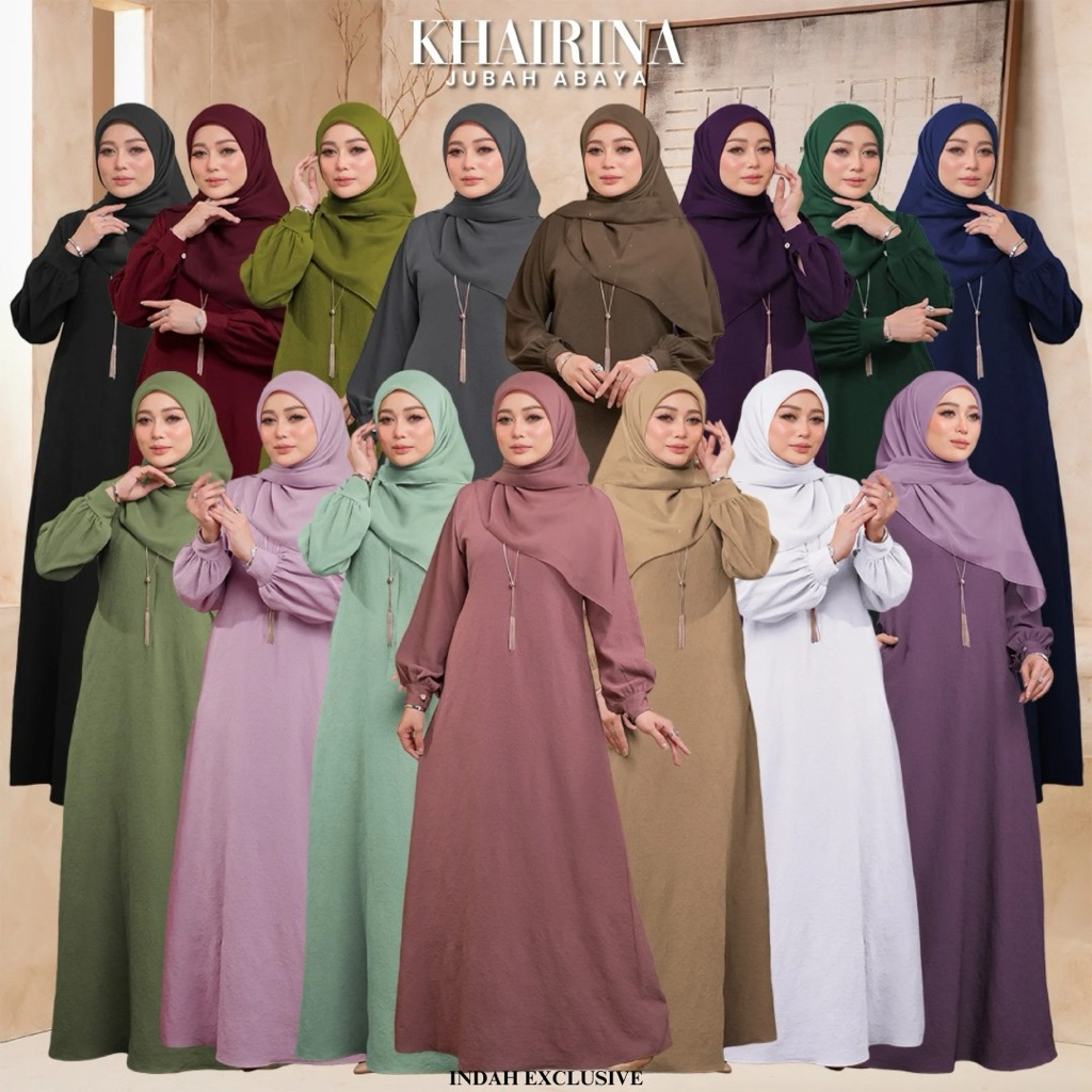 Dress Muslimah Jubah Abaya Sulam Kaftan Ironless Umrah Haji Travel Plussize - JUBAH ABAYA KHAIRINA