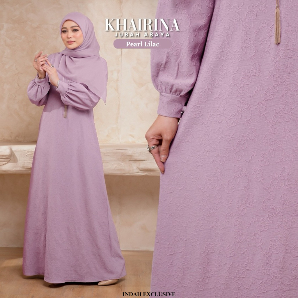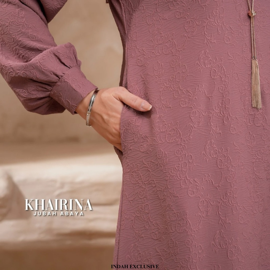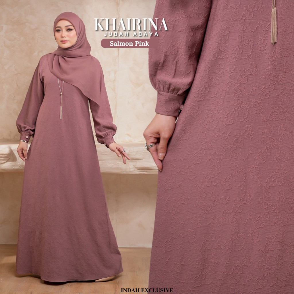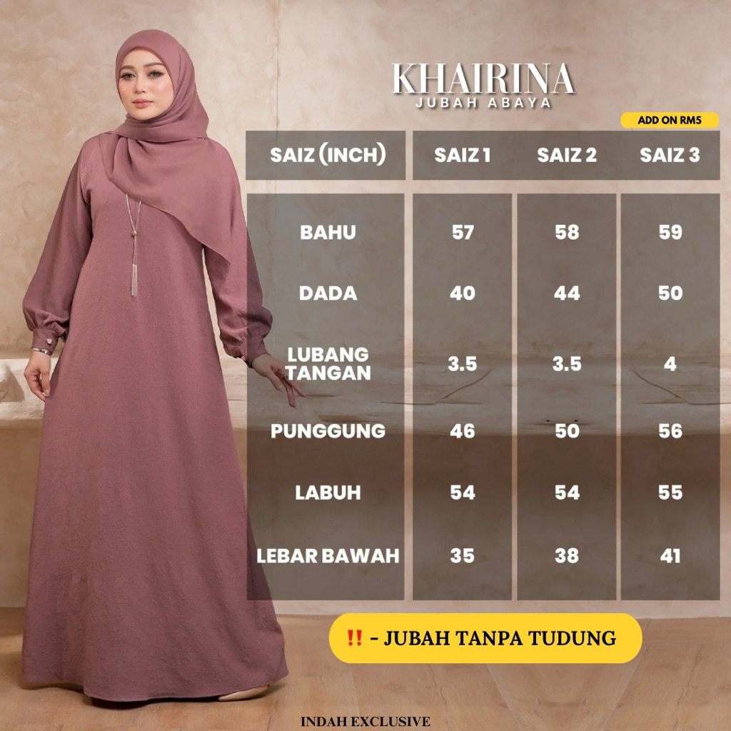 Dress Muslimah Jubah Abaya Sulam Kaftan Ironless Umrah Haji Travel Plussize - JUBAH ABAYA KHAIRINA