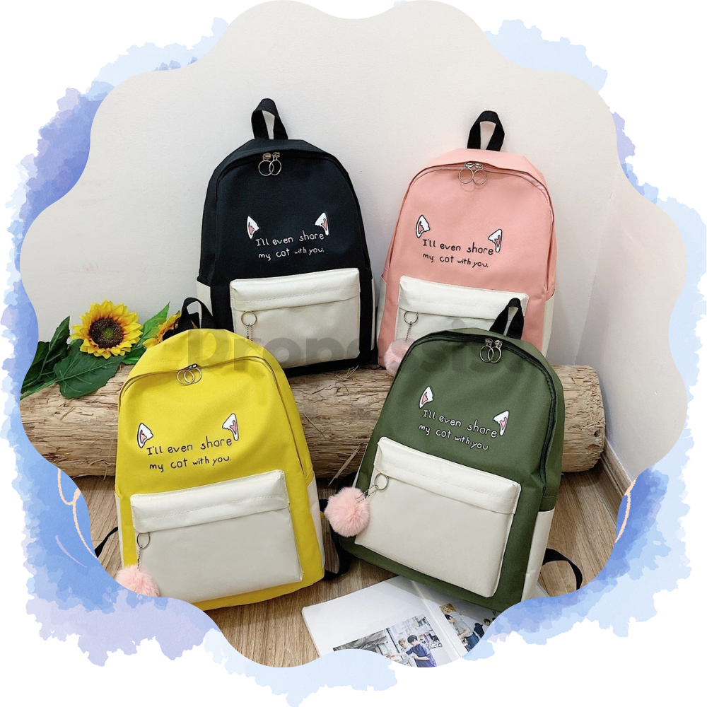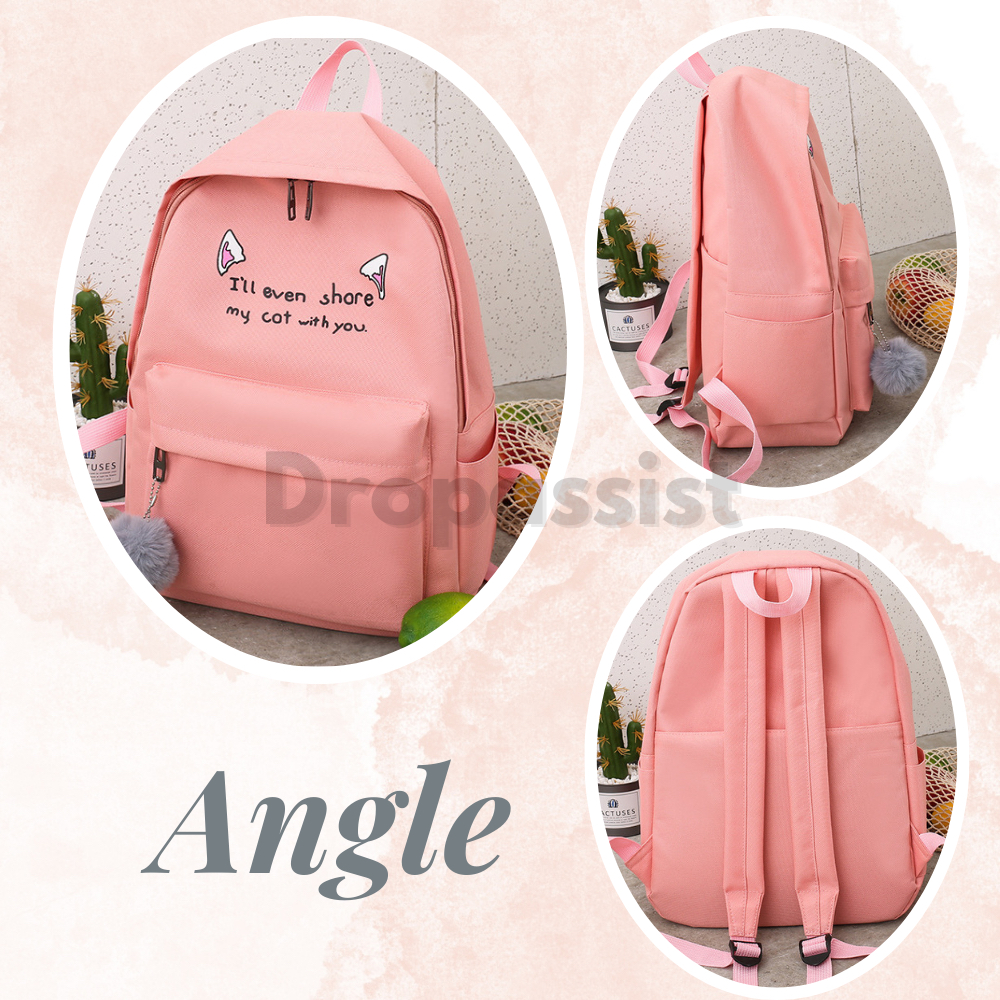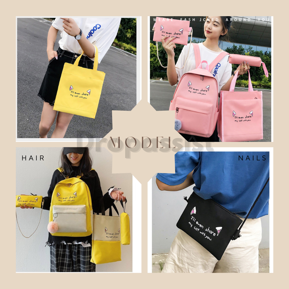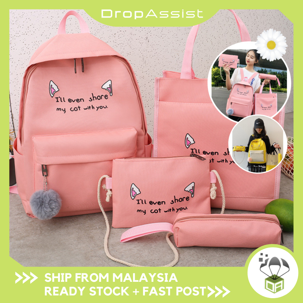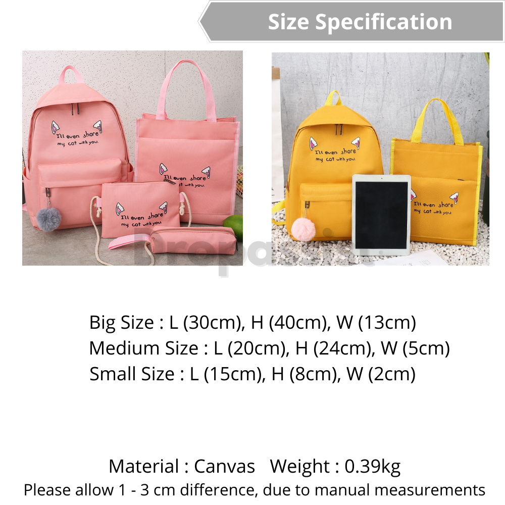 DROPASSIST READY STOCK 4 IN 1 Backpack Set Canvas School Student Bag Sekolah Women Handbag Tote Beg Pen Case Set 1217