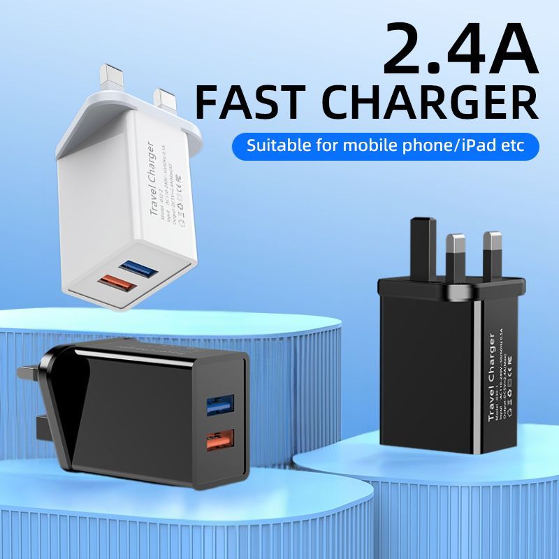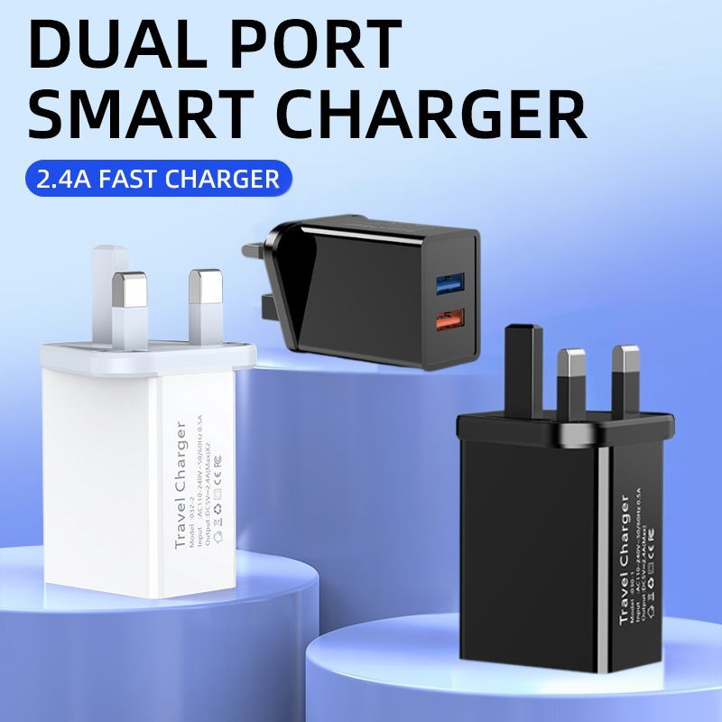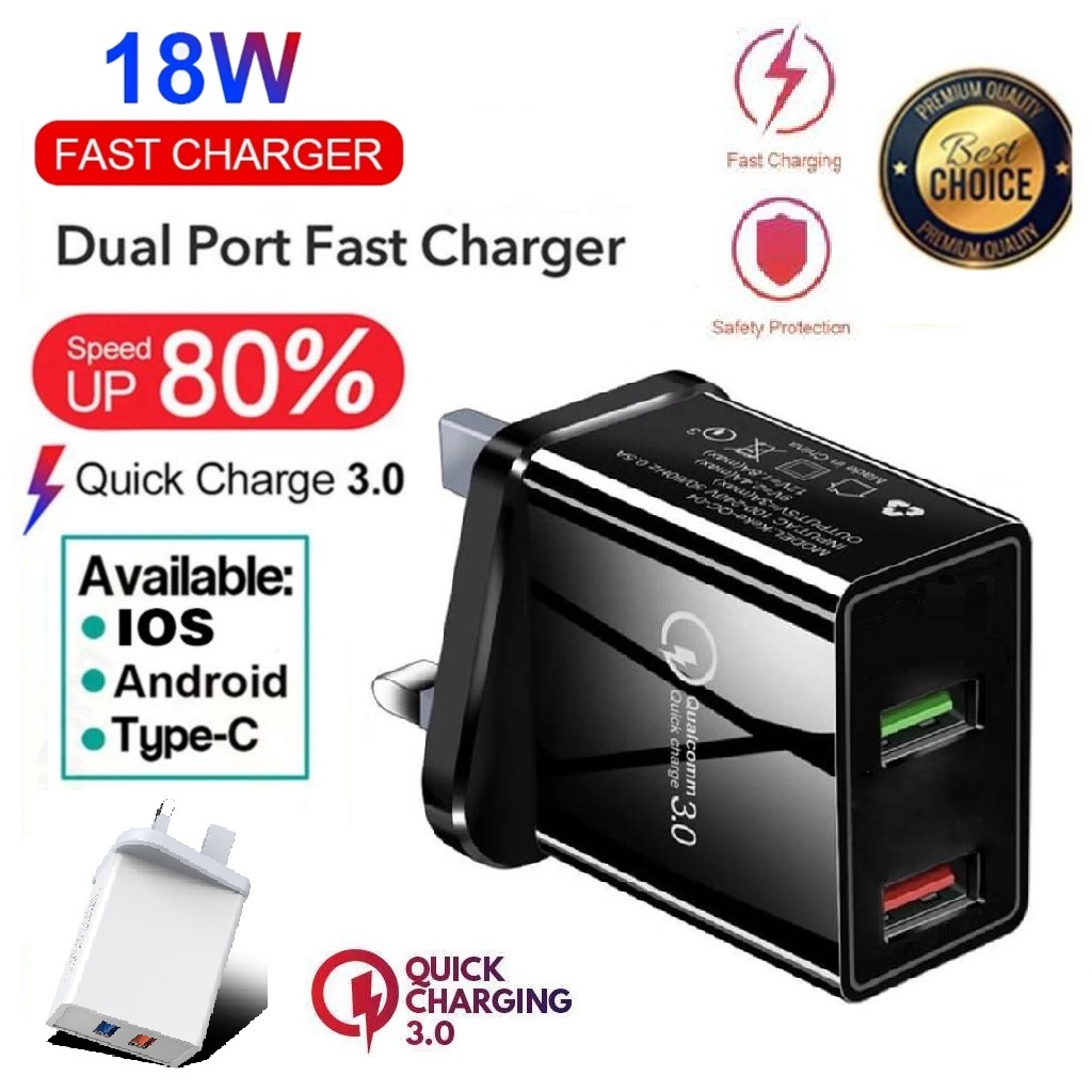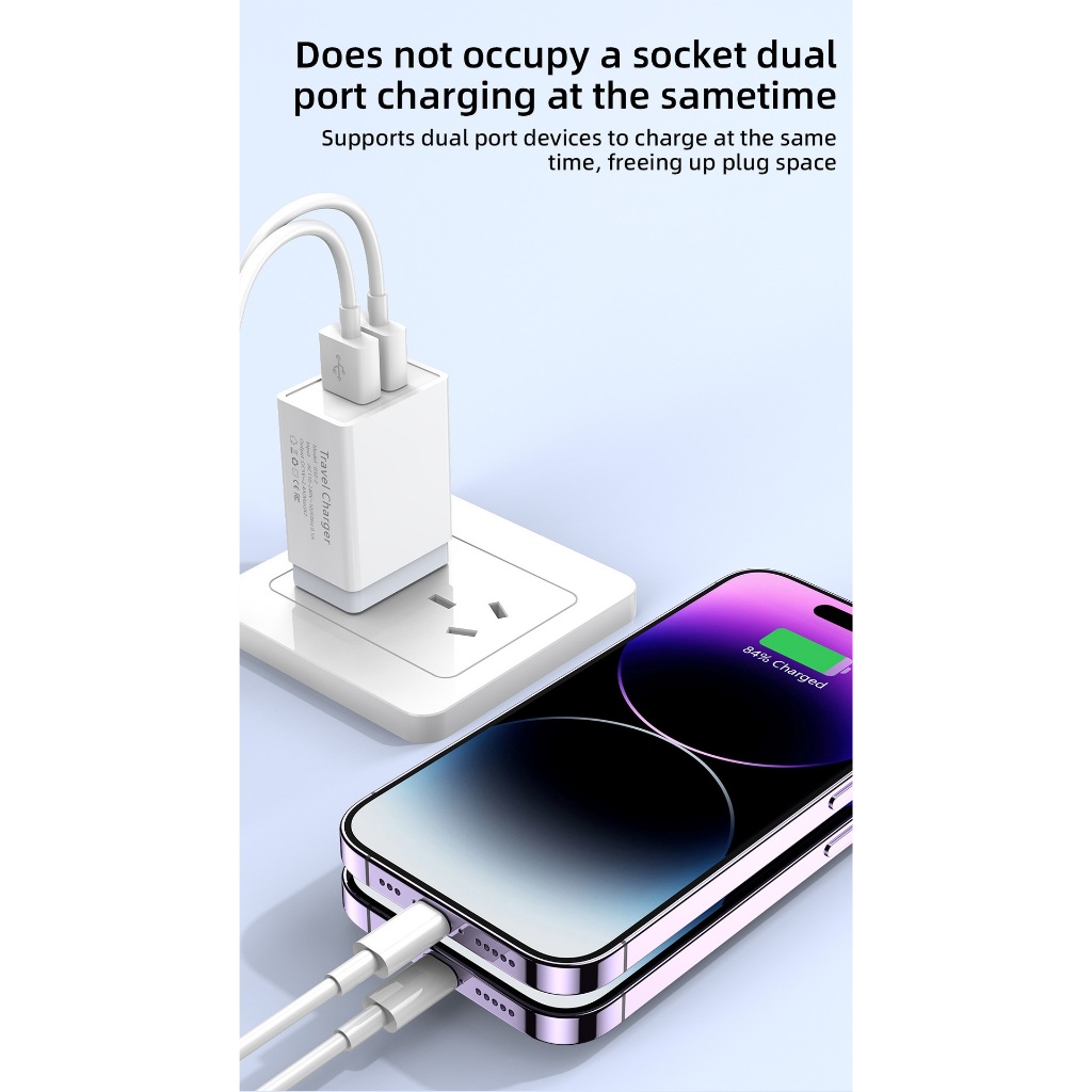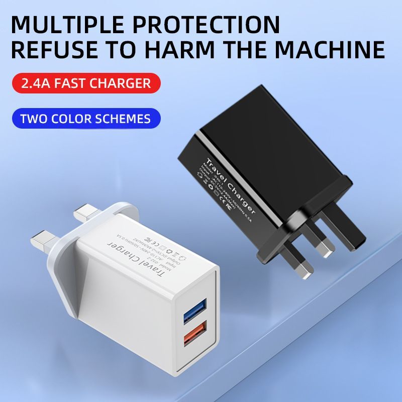 Dual Port Fast Charger 2.4A Quick Charge 18w Fast Charging Adapter With Cable For Ip Samsung Oppo Vivo Xiaomi Realme