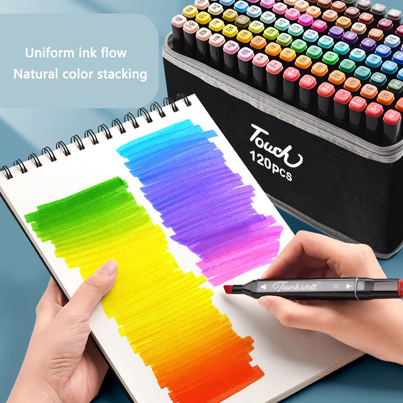 Dual Tip Alcohol Markers Set | Waterproof | Artist Supplies | Ideal for School & Art Projects Pensel cat air