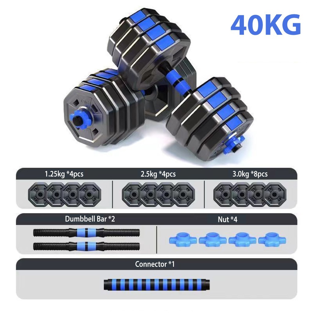 Dumbbell Set 10-40kg + 40cm Connector Bumper Plate Convertible & Adjustable Strength Gym Home Fitness 健身哑铃