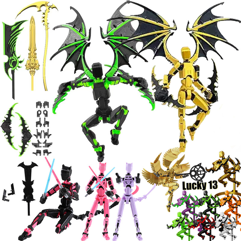 Dummy 13 DIY Cloak Death Vs Swordsman 3D Printing Lucky 13 Action Figure Dummy Robot Toys Model Movable Joints Assembly Toys Kid Gift