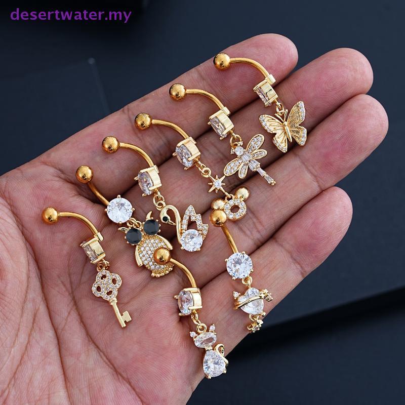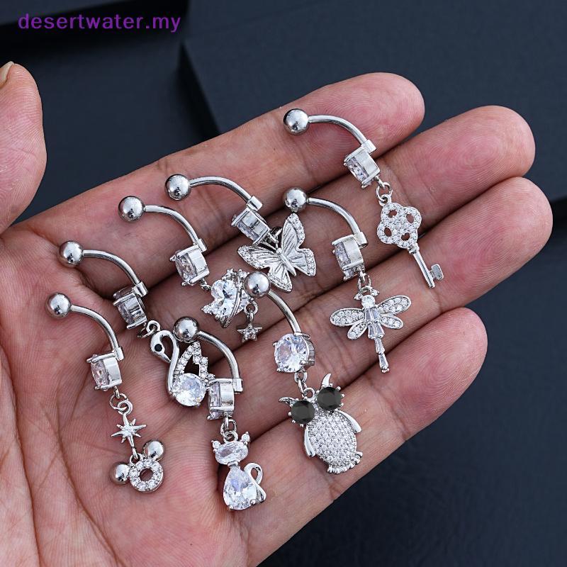 DWMY Fashion Zircon Butterfly Pendant Belly Button Ring For Women Girls Navel Piercing Jewelry Accessories Sexy Delicate Belly Ring MY