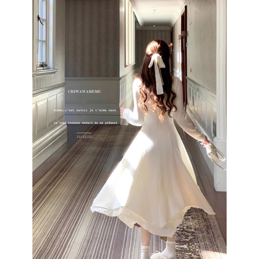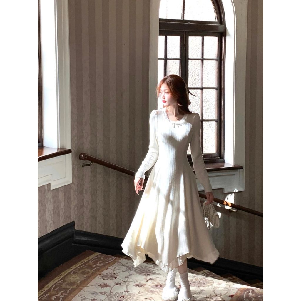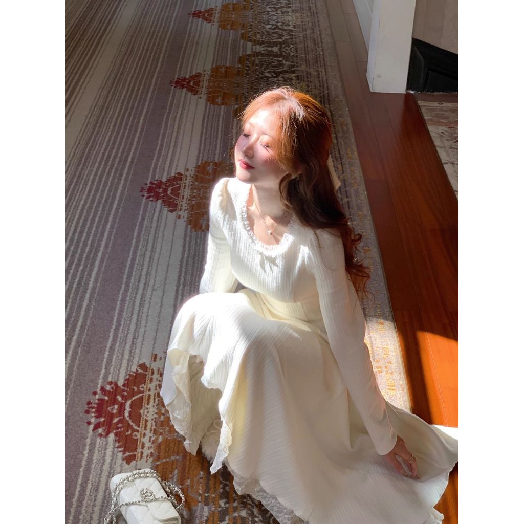 Early Autumn White French Style Long-Sleeved Dress for Women