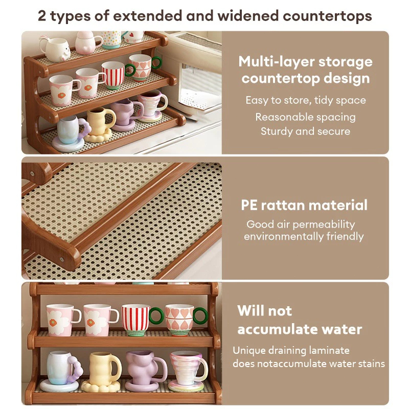 EBUY Bamboo Storage Rack 30/50CM Water Cup Holder Organizer Space Rak Rak Dapur Kayu 储物架