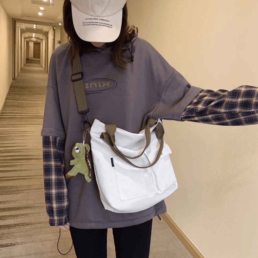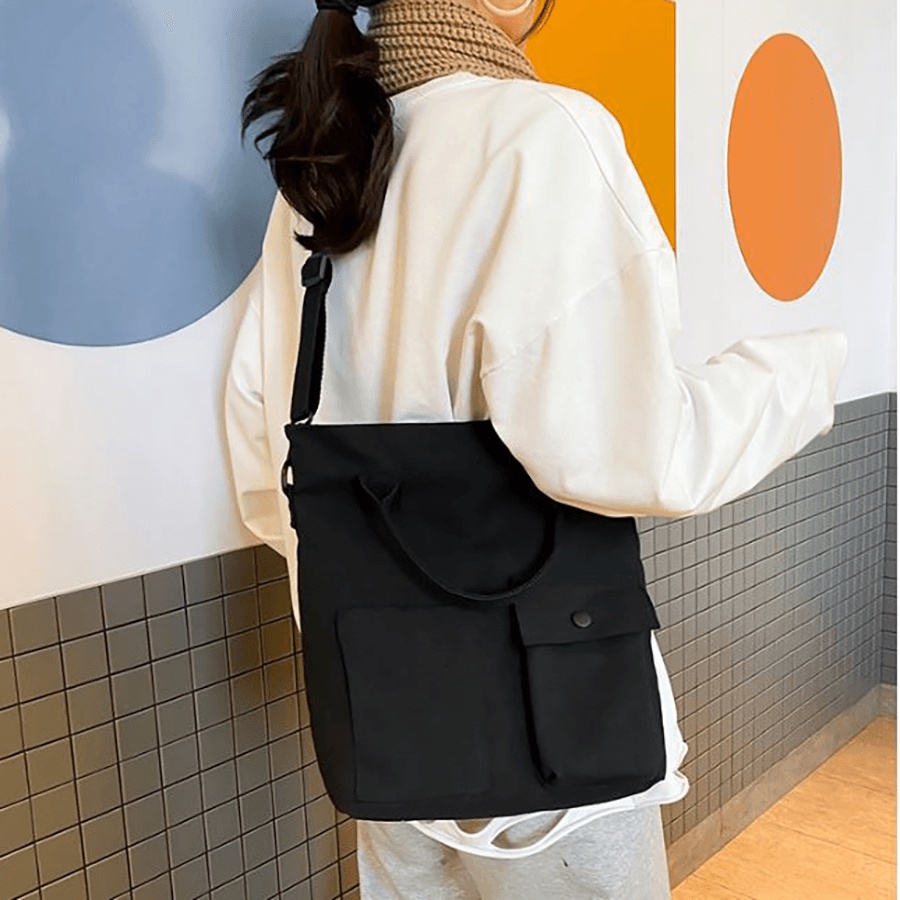 Eco Bag Tote Bags Canvas Sling Bag Women Bag Student Crossbody Shoulder Bags Casual Tote Beg College WanitaBag Murah L08