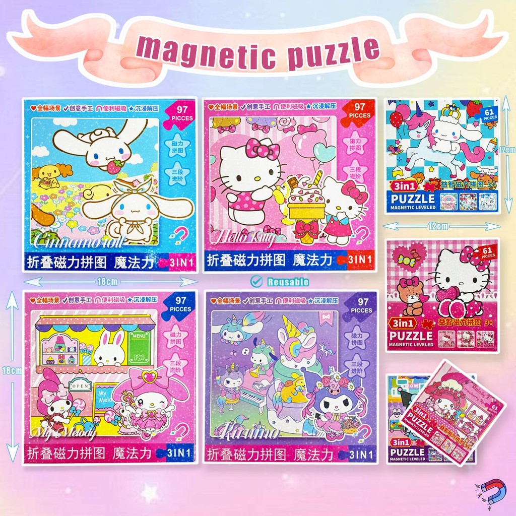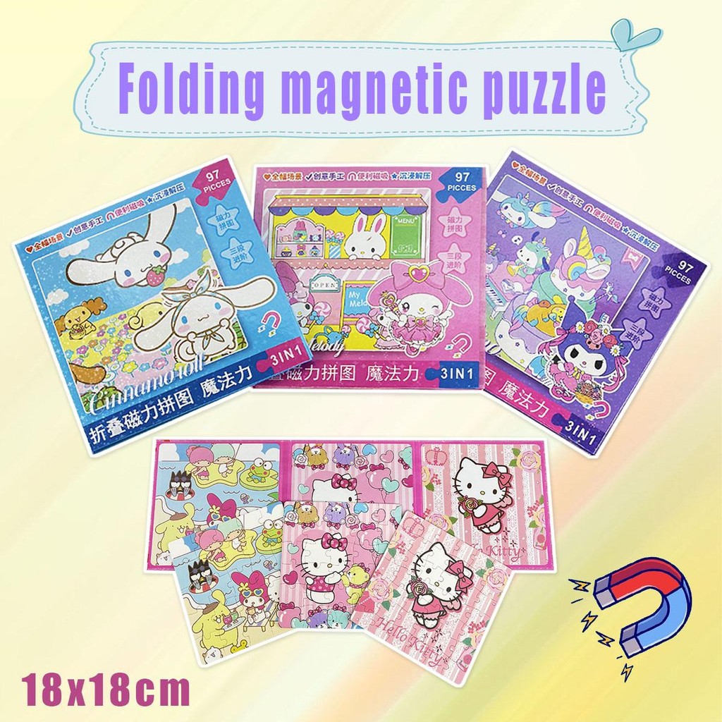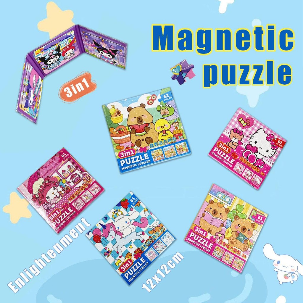Educational Magnetic Jigsaw Puzzle Melody Kuromi Kids Foldable Reusable Sanrio Capybara Dinosaur Learning Toy Tepuzzle Magnetic Book Baby Toy Birthday Children's day Ultraman