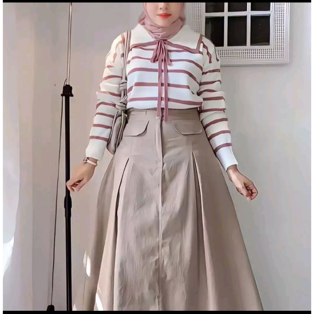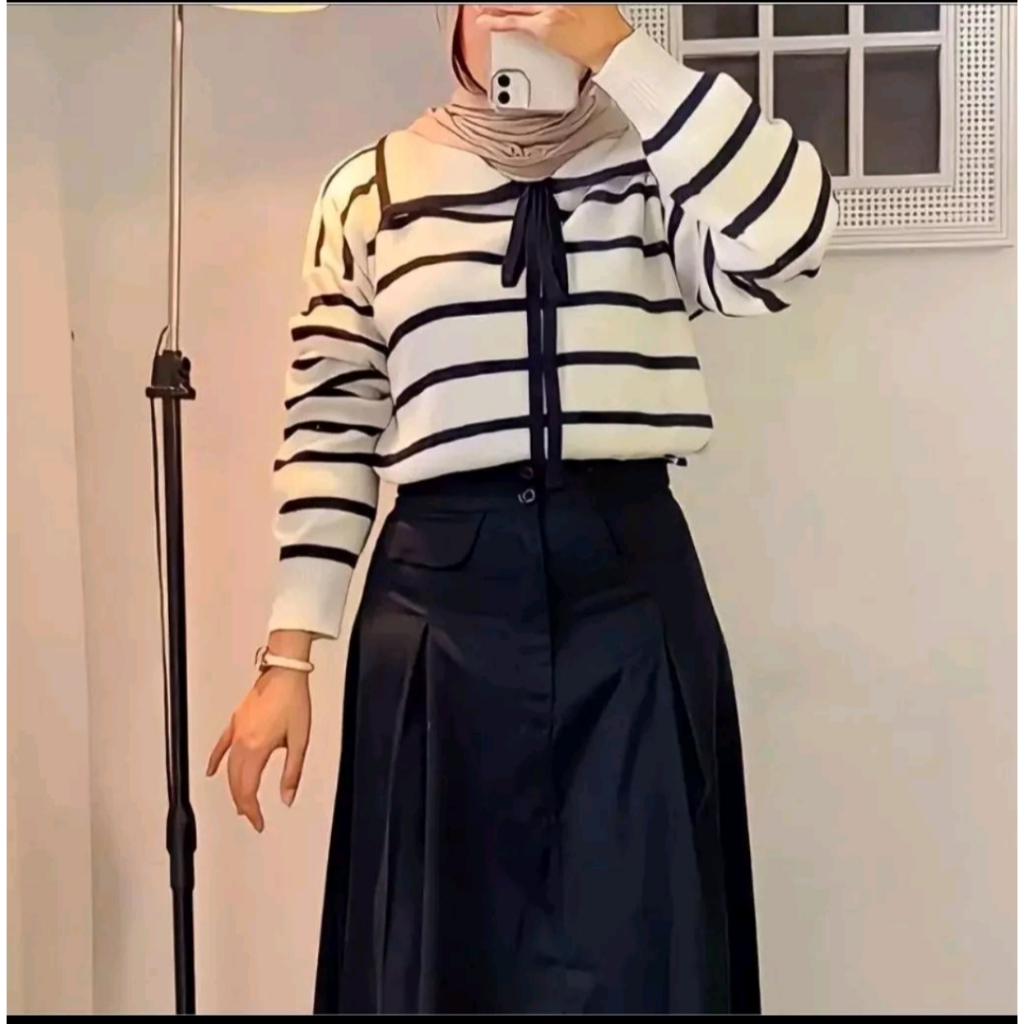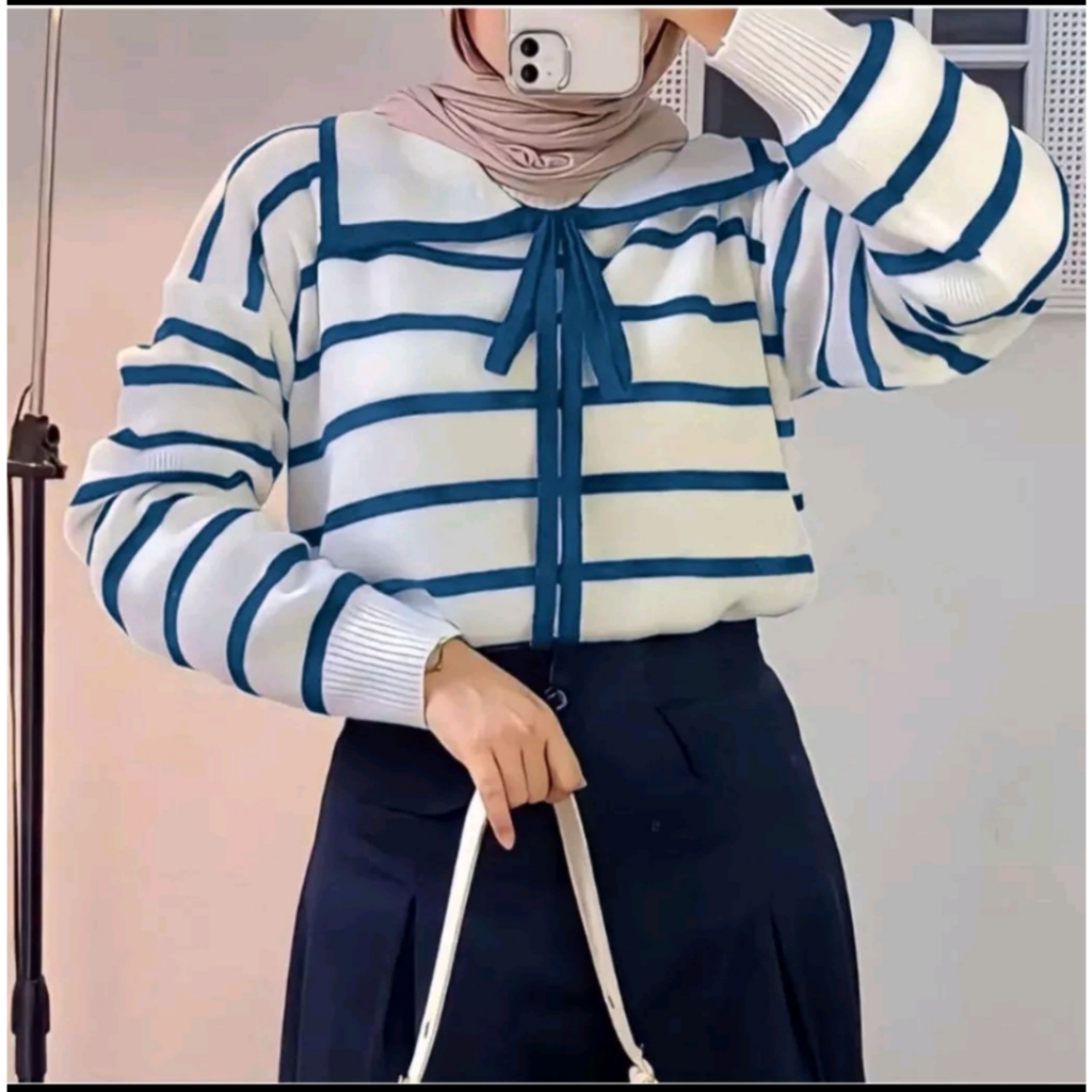 Eily Knitted Sweater Top - Women's Knitted Top with Striped Collar and Long Sleeves