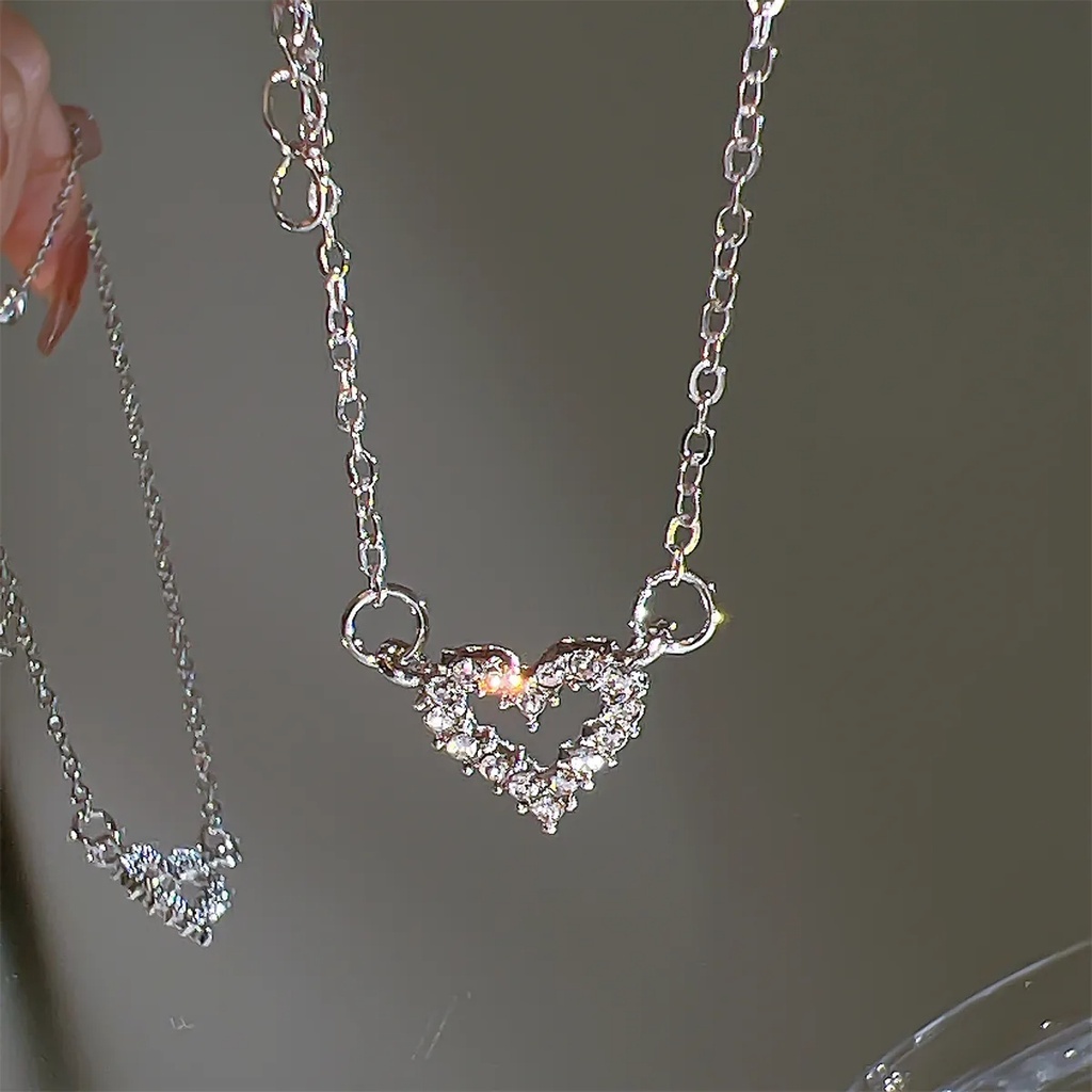 Elegant Butterfly Heart Pendant Necklace Zircon Silver Chain Choker for Women Jewelry Accessories