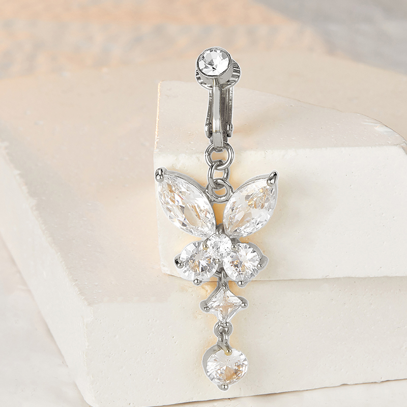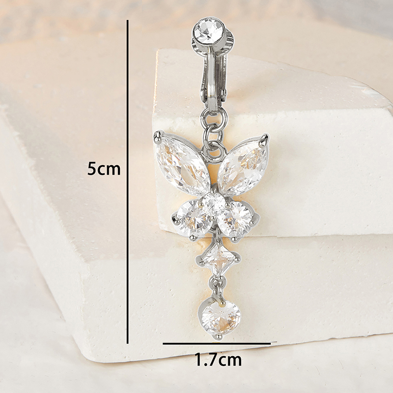 Elegant Long Butterfly Zircon Body Piercing Ring for Women - No-Pierce Belly Button Jewelry - Stylish Party Accessory