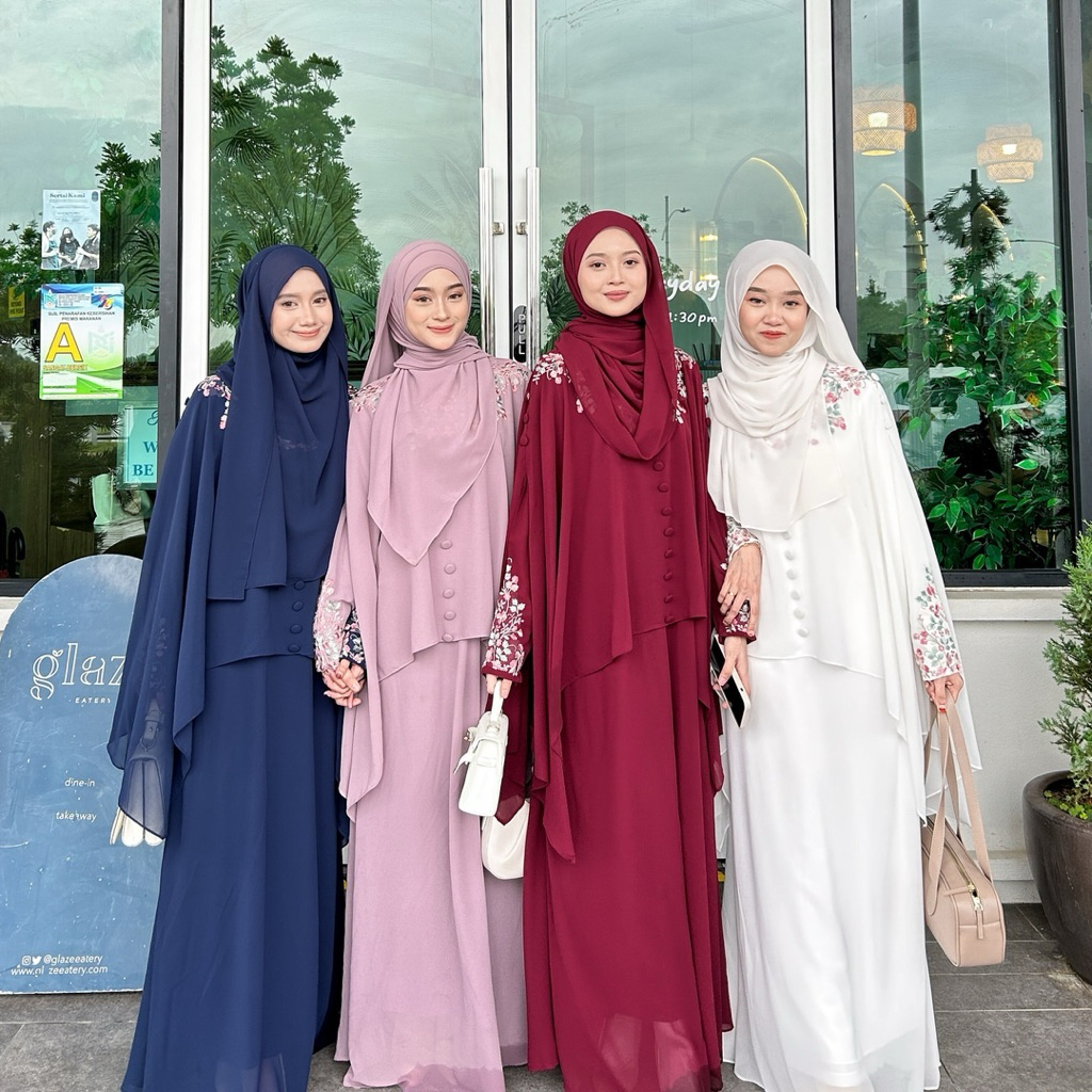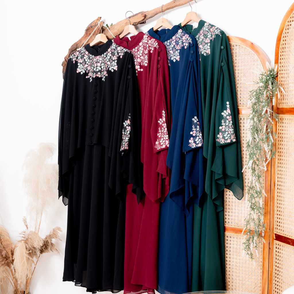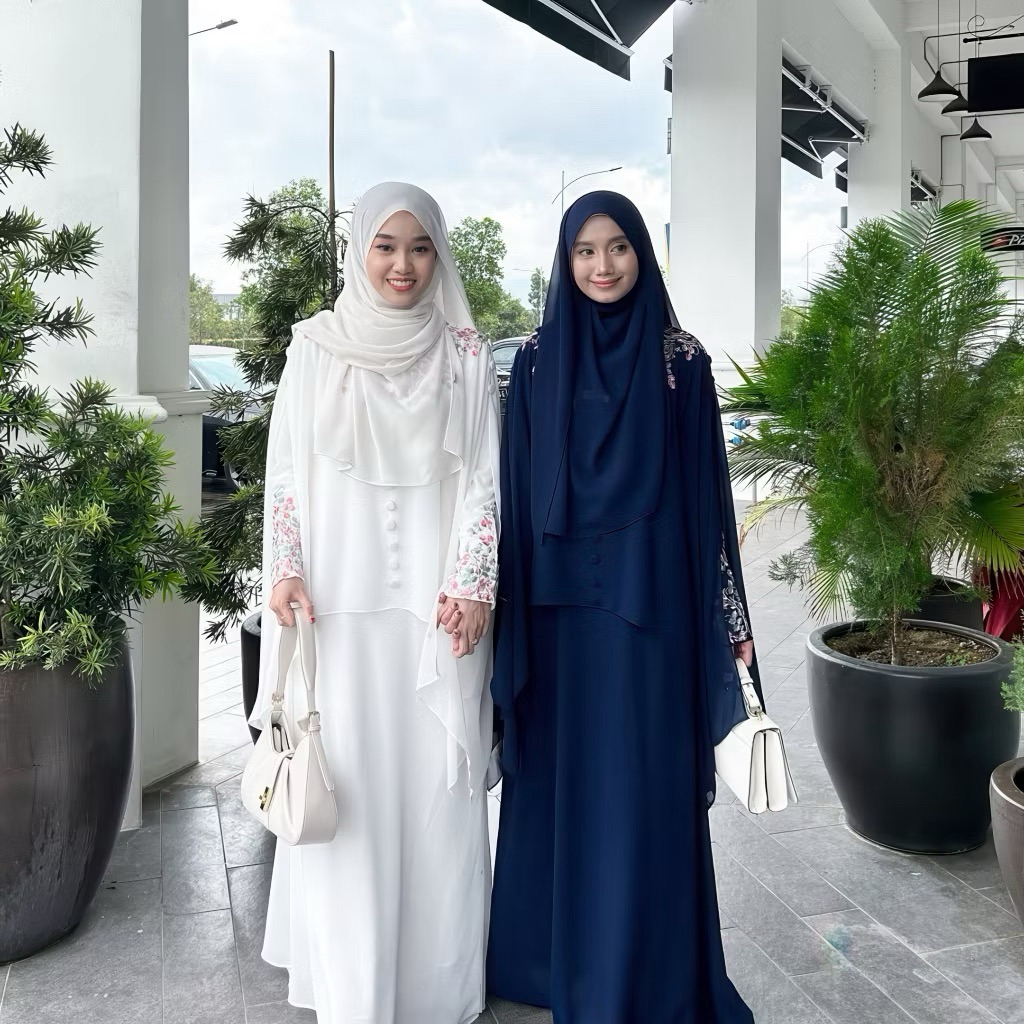 Ellmera Label - Qamira Abaya with Matching Chiffon Shawl Muslimah Comfy Wear Abaya Contemporary Matt Premium Gamis Outher Turkey Muslim Women Adult Party Luxury Eid Black Teenage Maxi Turkish Embroide