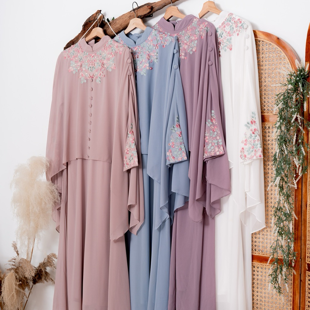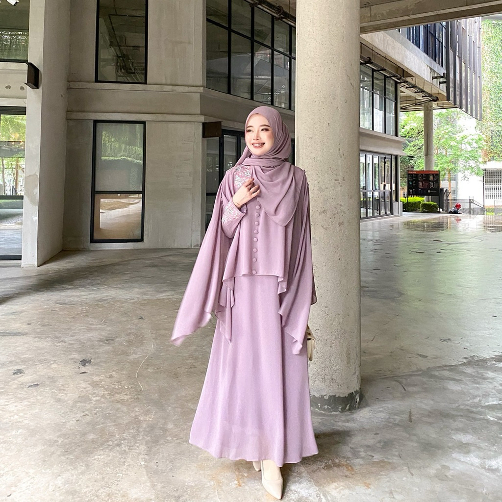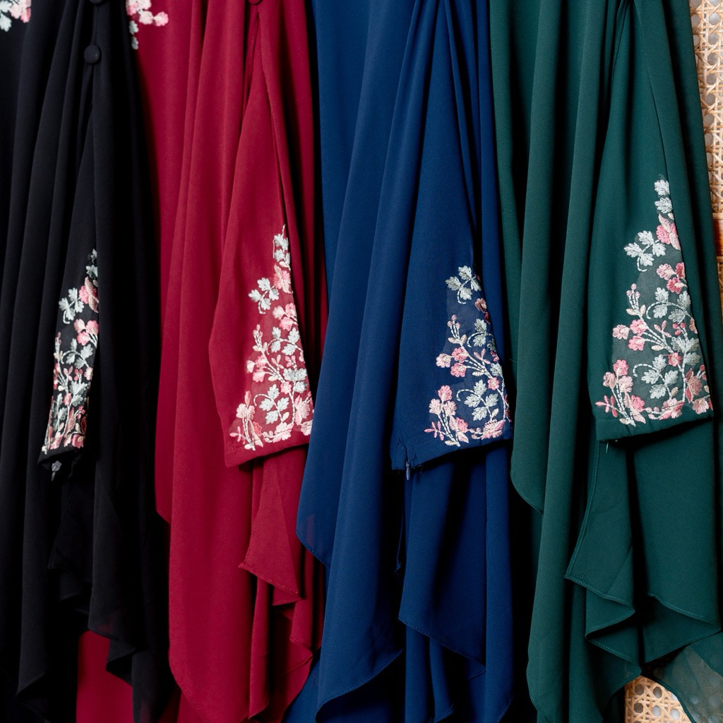 Ellmera Label - Qamira Abaya with Matching Chiffon Shawl Muslimah Comfy Wear Abaya Contemporary Matt Premium Gamis Outher Turkey Muslim Women Adult Party Luxury Eid Black Teenage Maxi Turkish Embroide