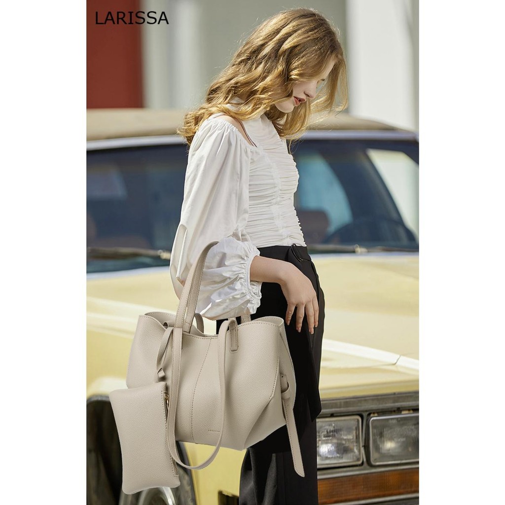 ELOWEN-LARISSA WOMEN'S TOTE BAG WING PLEATED SHOULDER HANDHELD LARGE CAPACITY WOMEN'S BAG WITH POUCH BEG WANITA (2866)