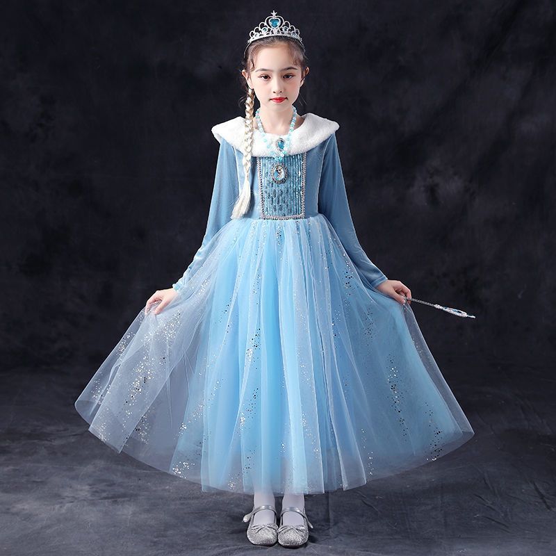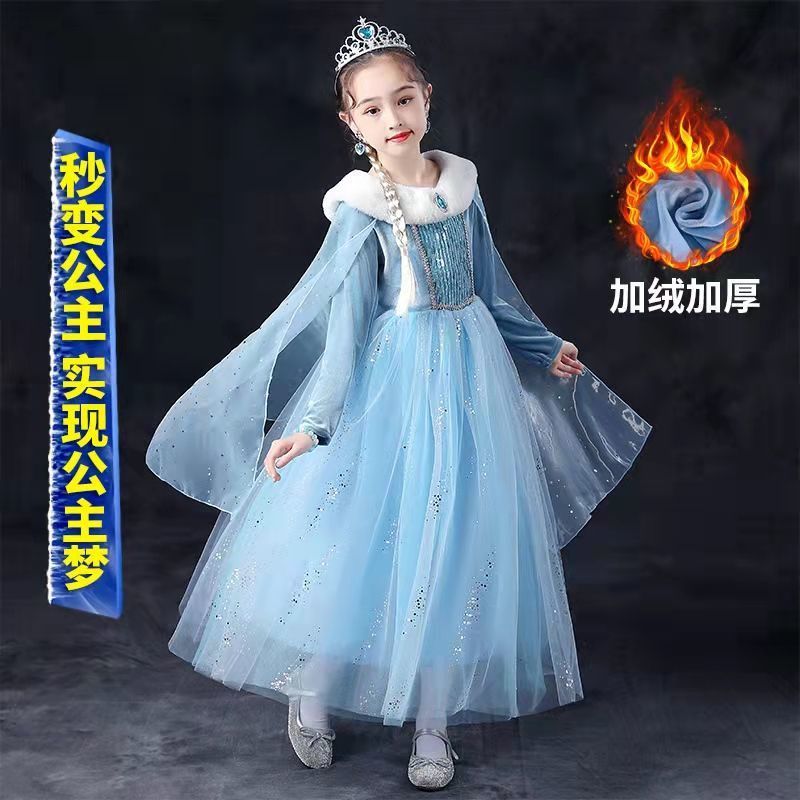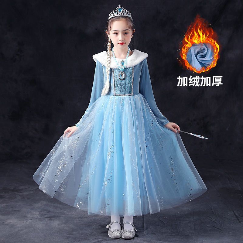 Elsa Princess Dress Women Winter Thickened Frozen New Style Autumn Winter Girls Dress Elsa Elsa Dress