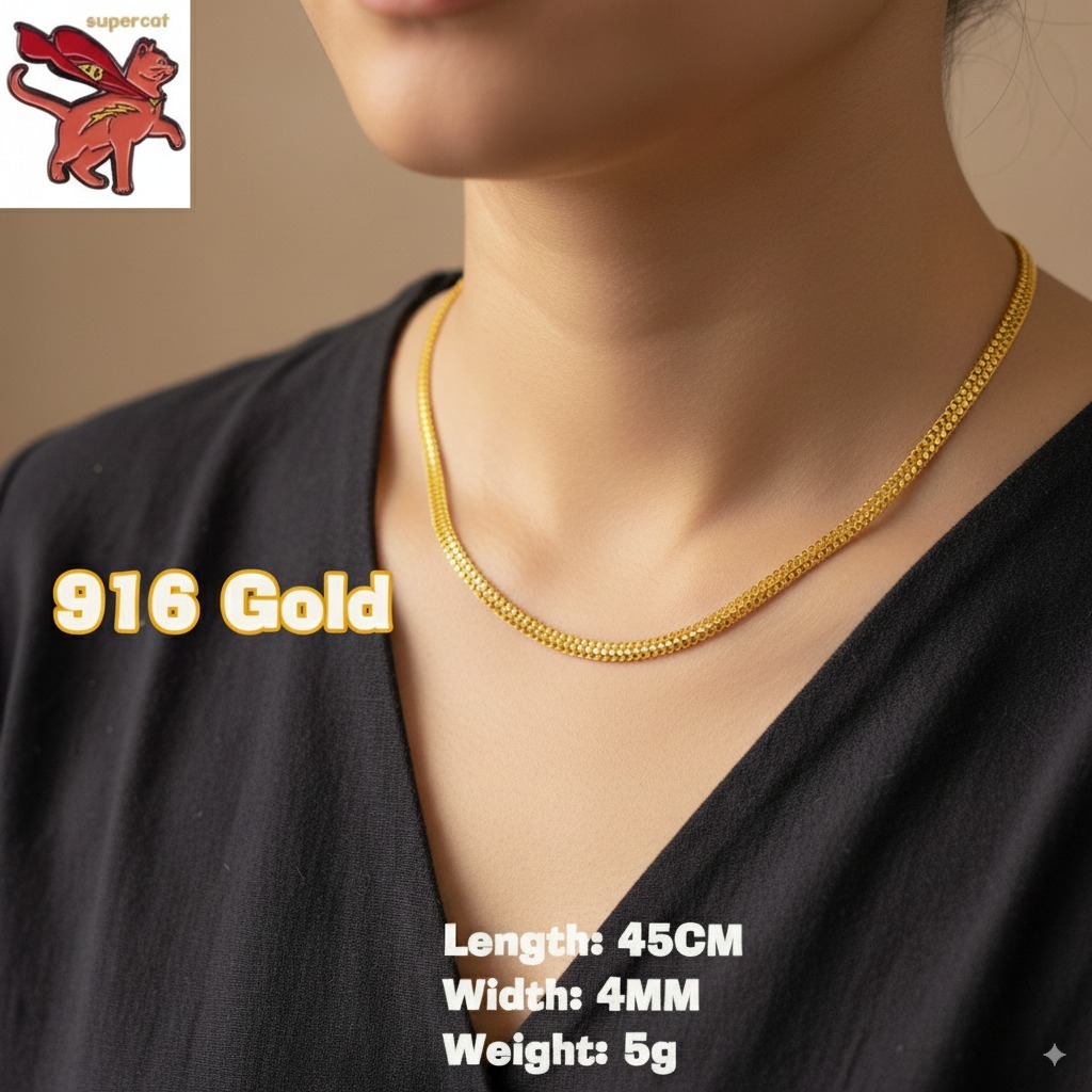 Emas 916 Gold Necklace for Women | Classic Rantai Leher Pendant | Korean Style Charm | Birthday & Gift Jewellery | Malaysia Hot Sale