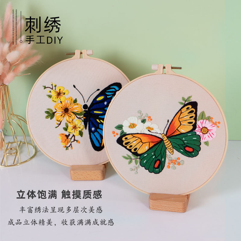 Embroidery Kit Butterfly DIY Embroidery Kit Embroidery Set Beginner Handmade Sewing Needlework Cross Stitch 手工DIY刺绣材料包蝴蝶