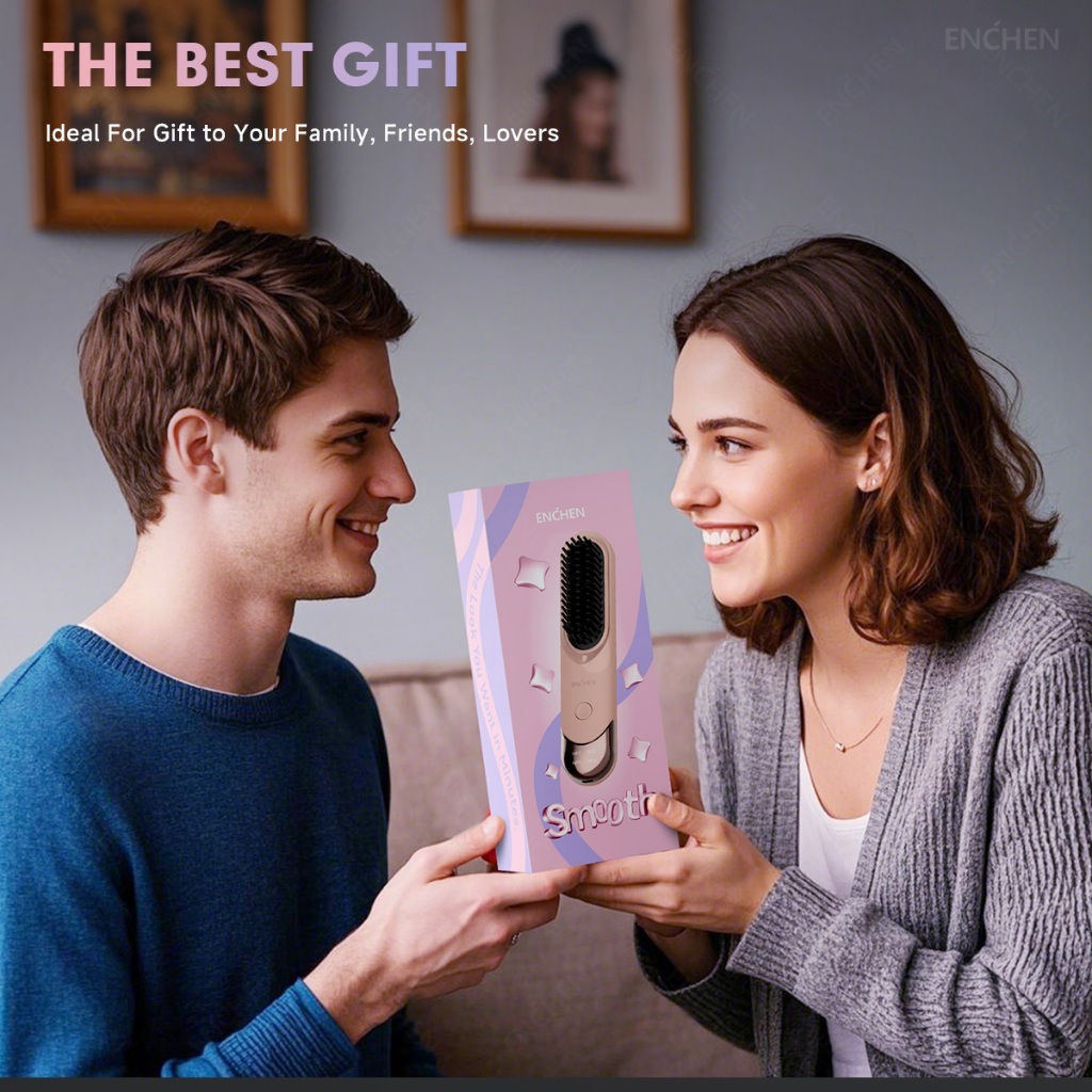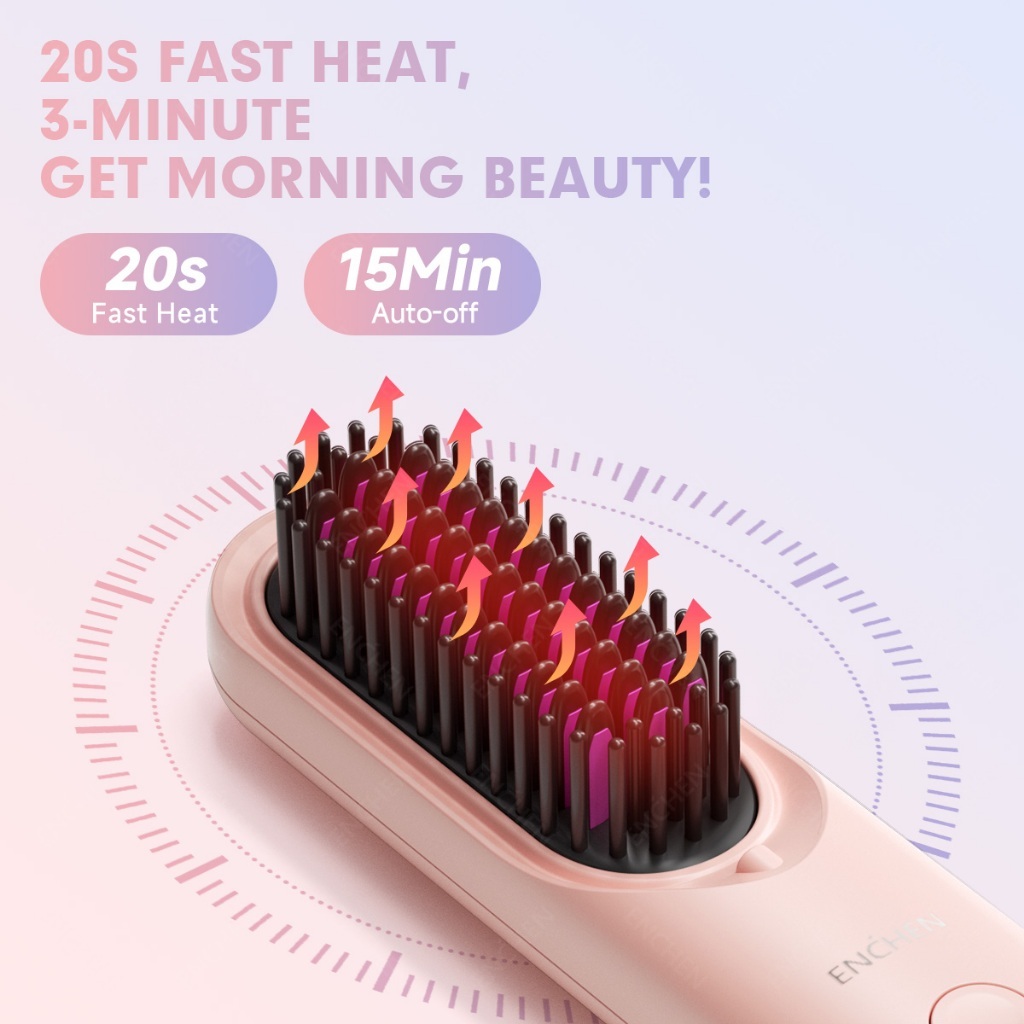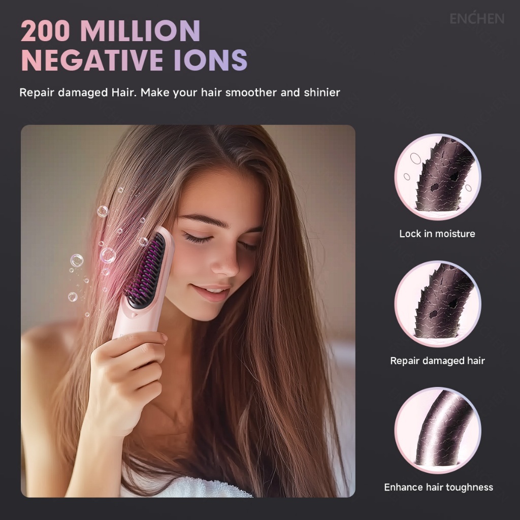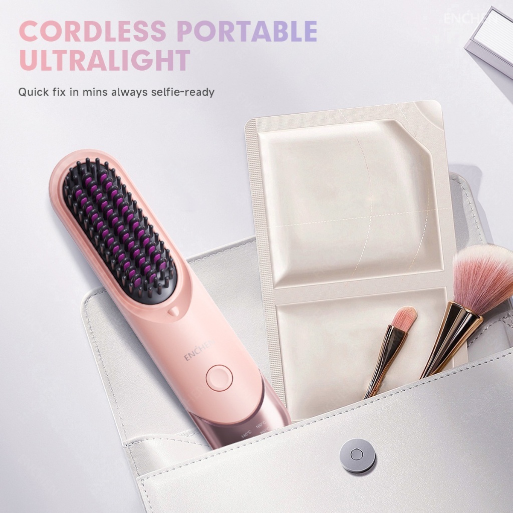 Enchen Pelurus Rambut H100 Cordless Hair Straightener Comb Wireless Negative Ionic Brush