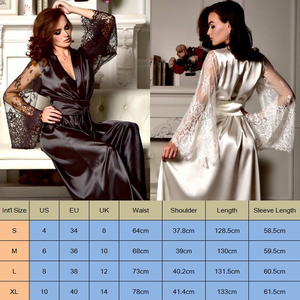 EOS-Sexy Fashion Soft Lace Women Lady Kimono Silk Gown Robes Long Nightwear