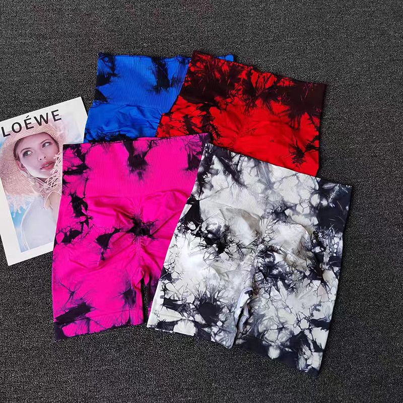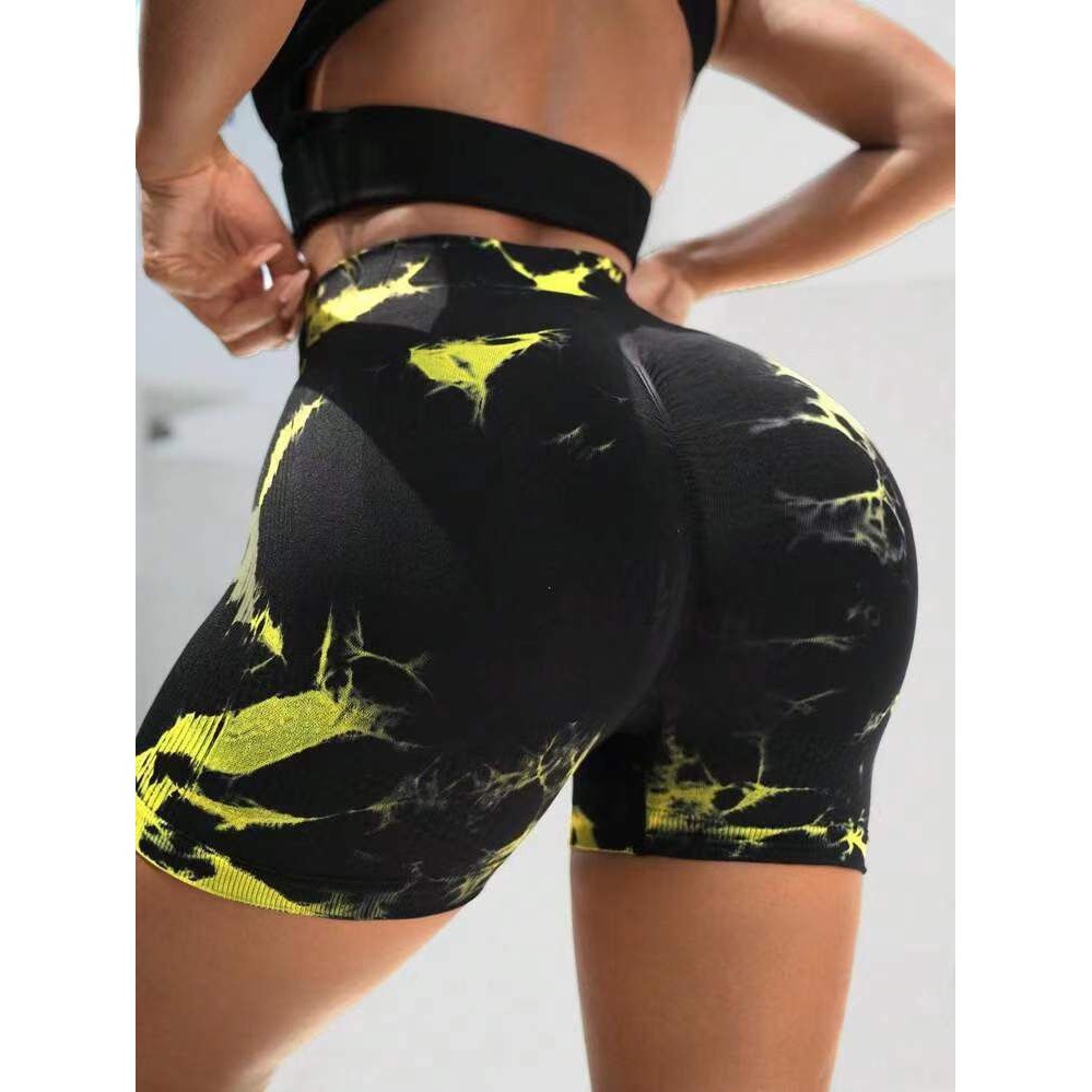 European American Sexy Tie-Dye Hip-Lifting Fitness Pants High Waist Peach Hip Skinny Sports Shorts Training Hip-Lifting Yoga Pants