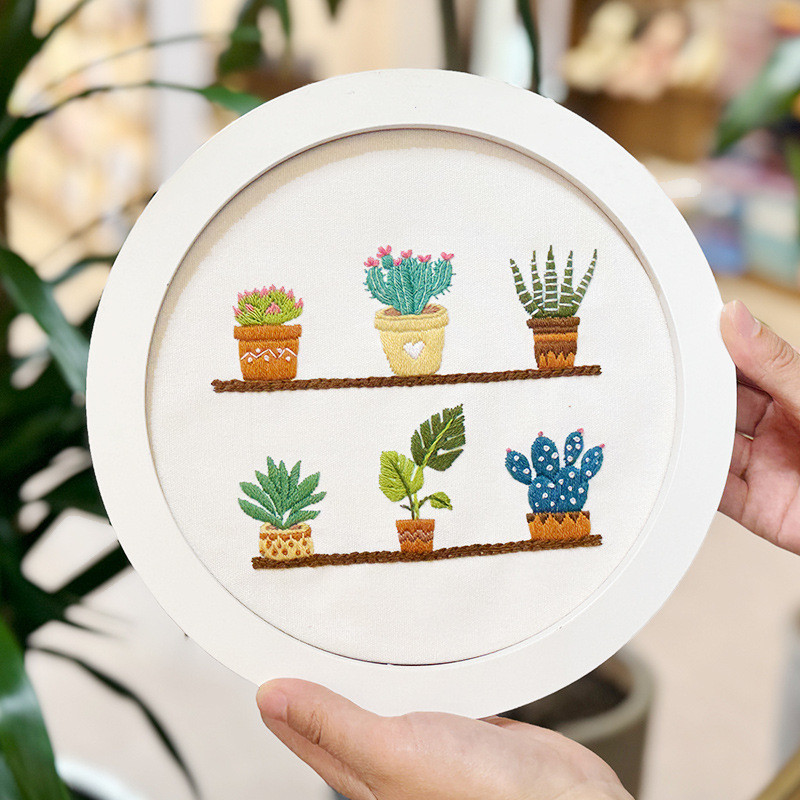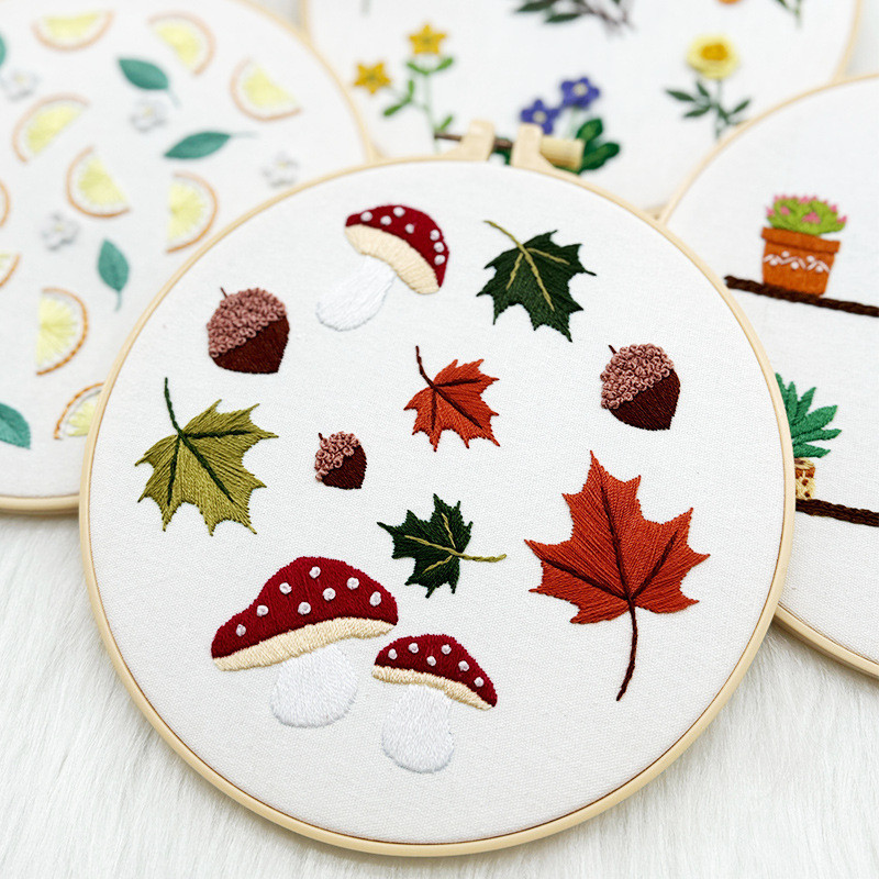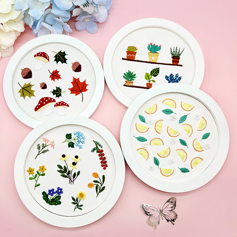 European Floral Embroidery DIY Kit | 3D Botanical Needlework Small Art Beginner-Friendly Starter Set- Set Sulaman Tangan