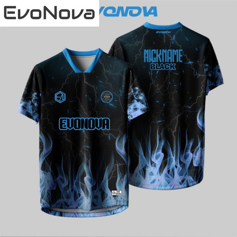 Evonova new design V-neck flame Jersey tshirt shirts men short sleeve quick dry full sublimation microfiber Jersey viral streetwear unisex free custom name