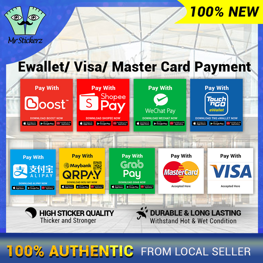 Ewallet/ Card Payment Sticker High Sticker Quality Long Lasting Touch N Go/ Grab/ Boost/ Shopee Pay/ Wechat/ Visa/Master