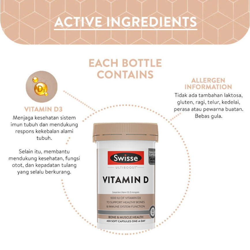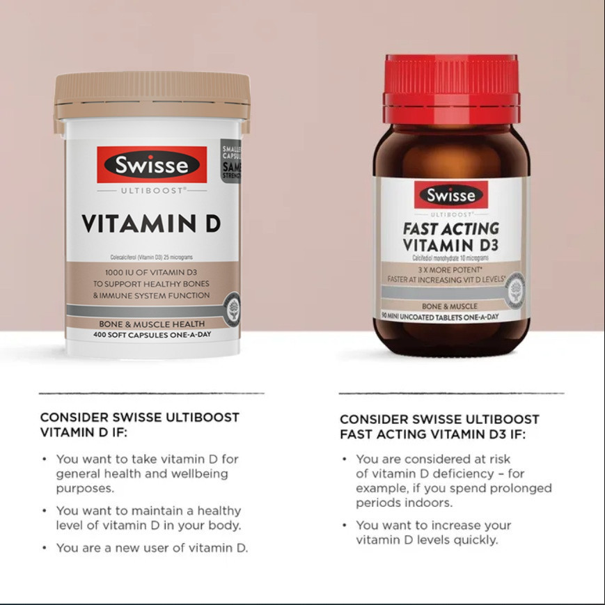 [EXP 01/2028] Swisse Ultiboost Vitamin D Bone Health ( 400 Capsules ) ( Made in Australia )