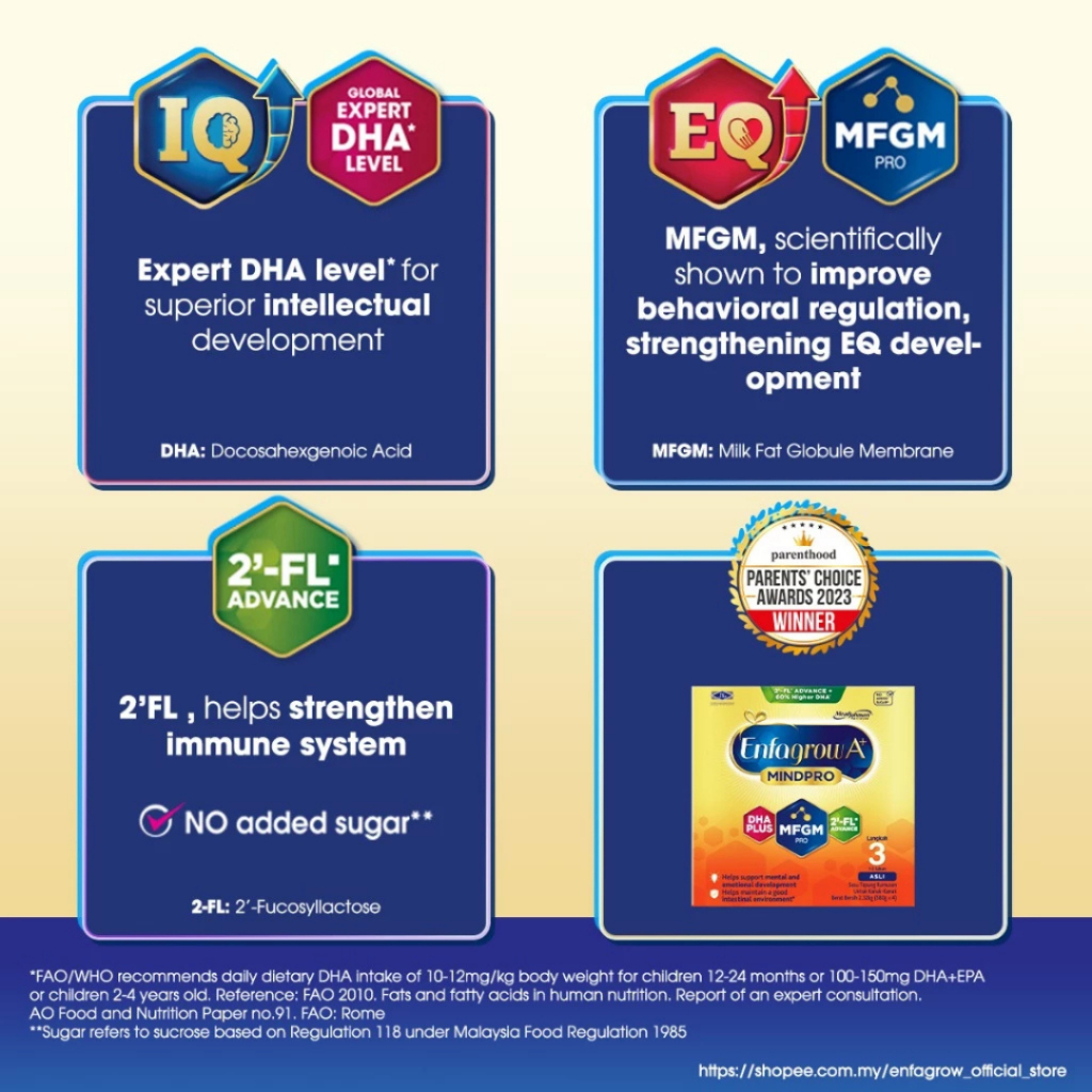 [EXP 2027] Enfagrow A+ MindPro 2'-FL Step 3 - Original Susu Milk Formula Powder (2.32kg)
