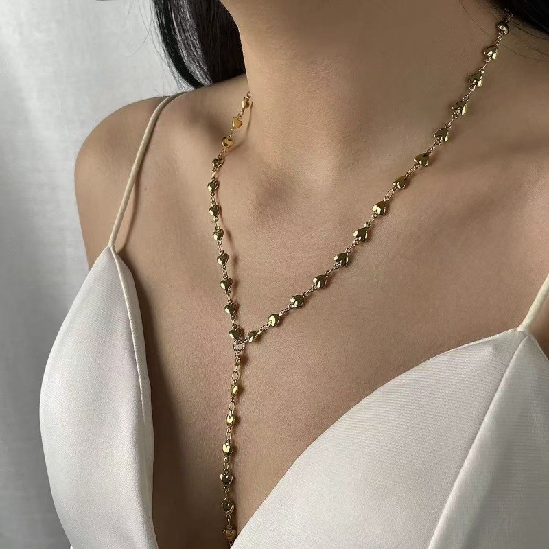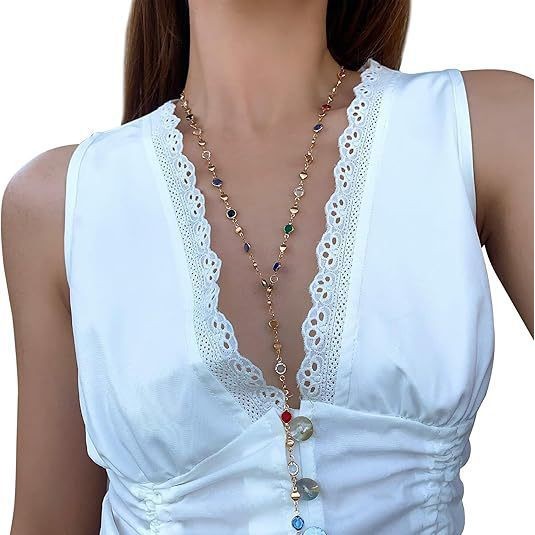 Exquisite Boho Heart Colorful Zircon Pearl Pendant Necklace Sparkling Long Choker Chain Women Choker Jewelry