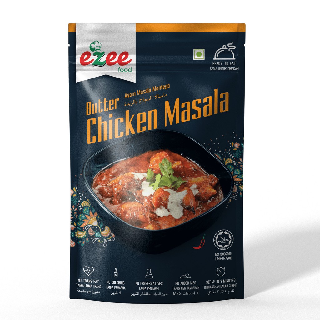 EZEEFOOD BUTTER CHICKEN MASALA / AYAM MASALA MENTEGA 180G GLUTEN FREE READY TO EAT MRTE / RTE MEALS TRAVEL INSTANT FOOD
