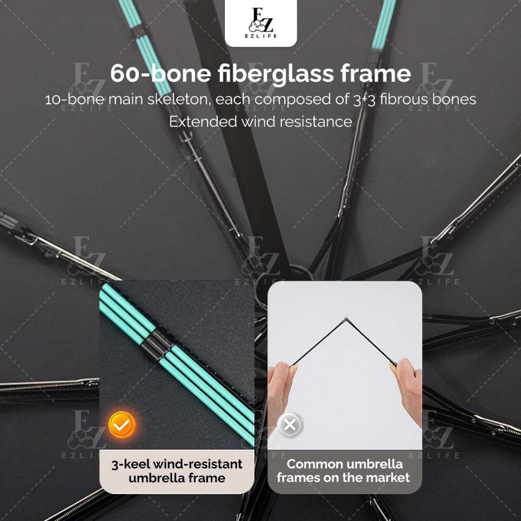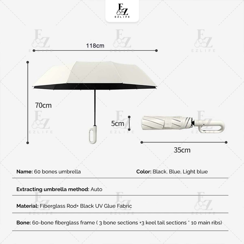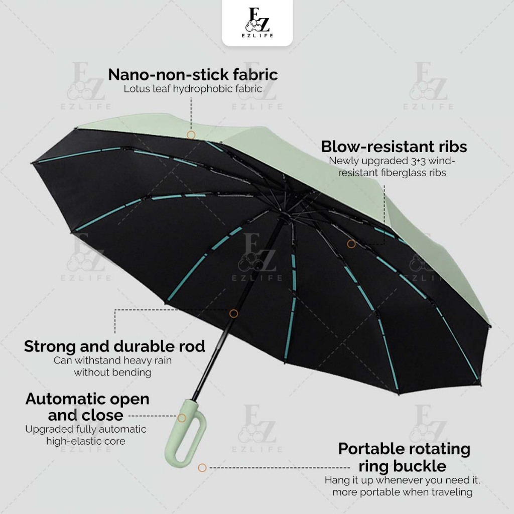 Ezlife 60 bones Umbrella Ring Buckle Handle Fully Automatic 10 ribs Folding UV Big Size Automatik Payung Lipat besar 雨伞
