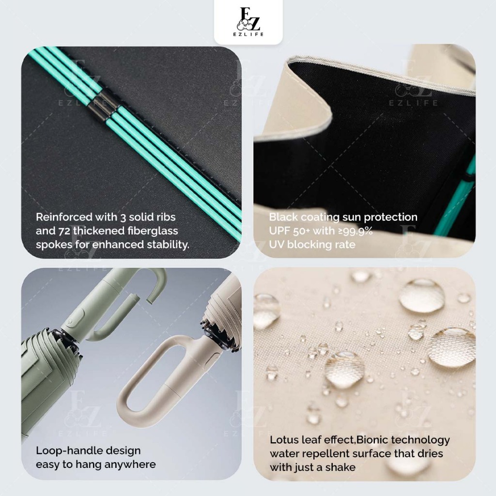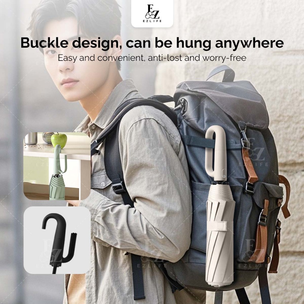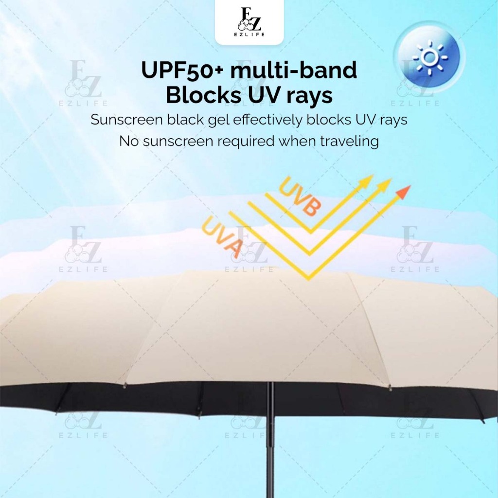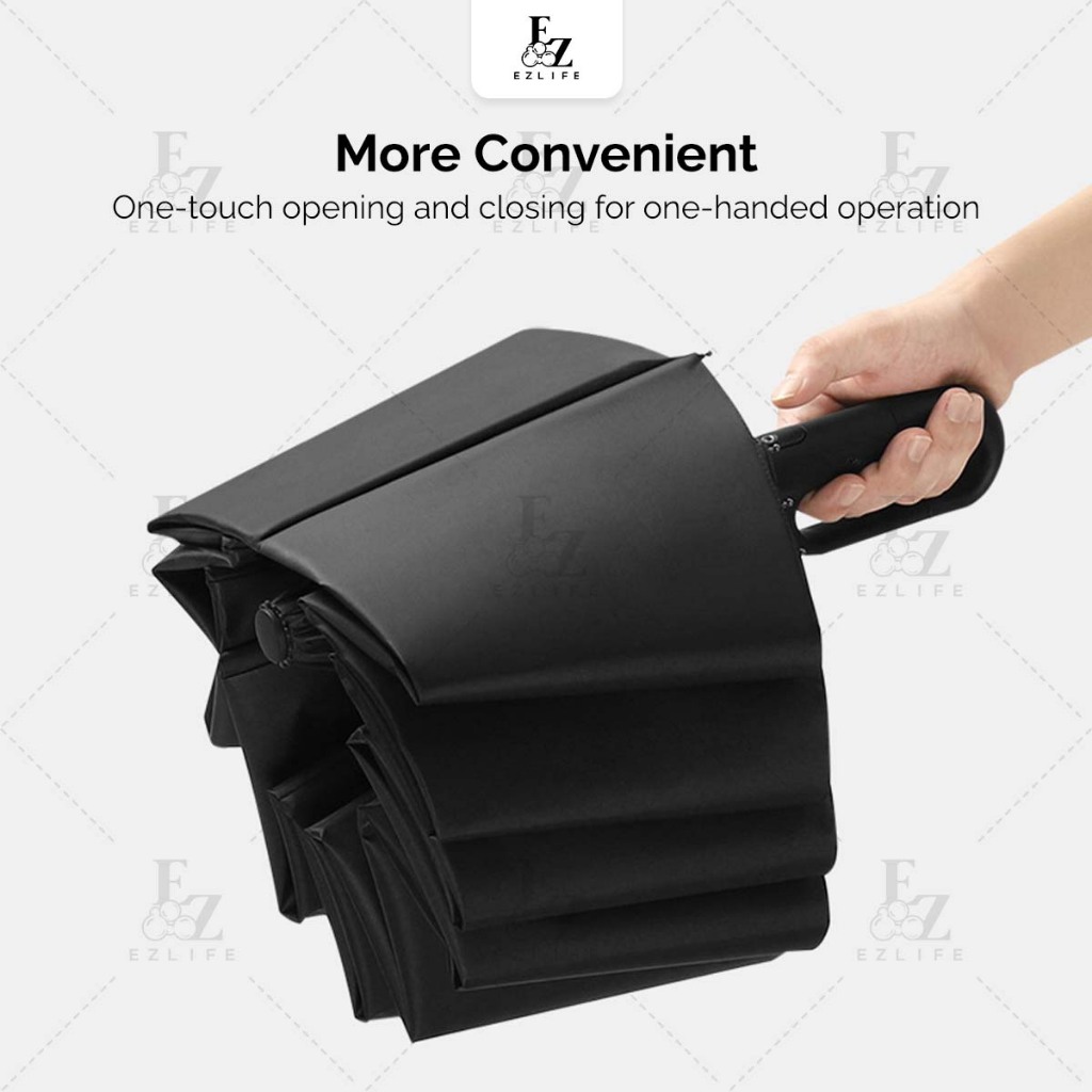 Ezlife 60 bones Umbrella Ring Buckle Handle Fully Automatic 10 ribs Folding UV Big Size Automatik Payung Lipat besar 雨伞