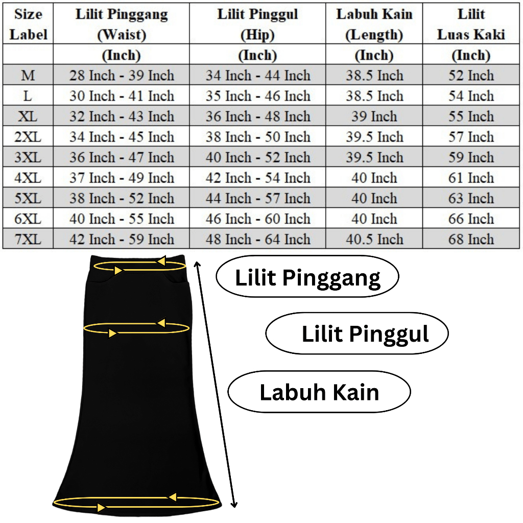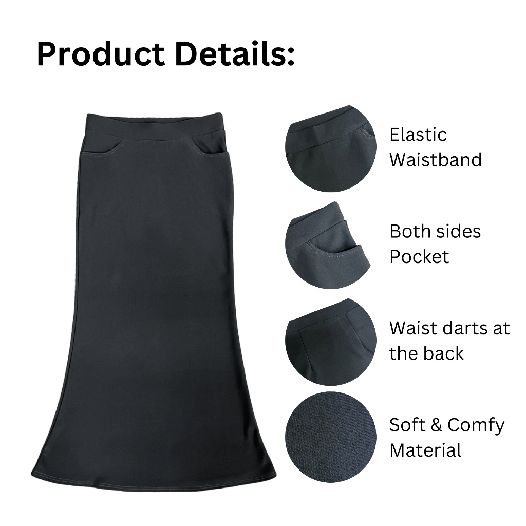 EZZE Ladies Plain Stretchable Mermaid Fishtail Muslimah Long Skirt Kain Skirt Mermaid Plain Panjang Wanita Perempuan