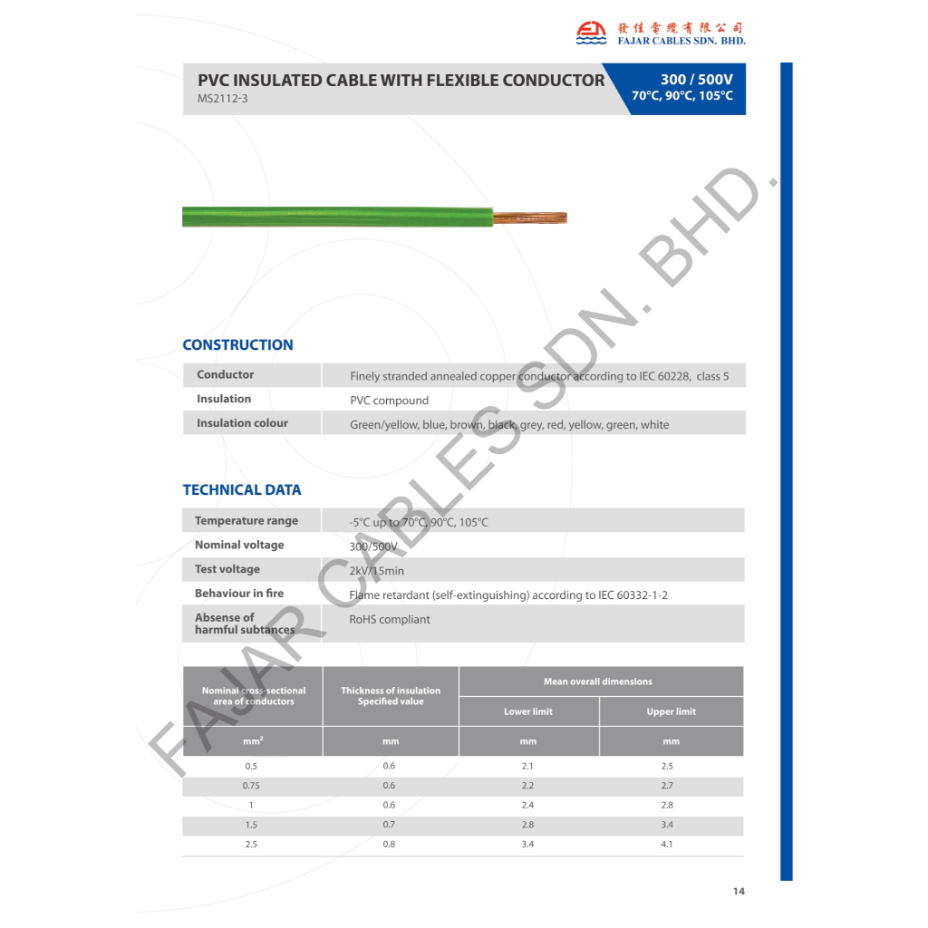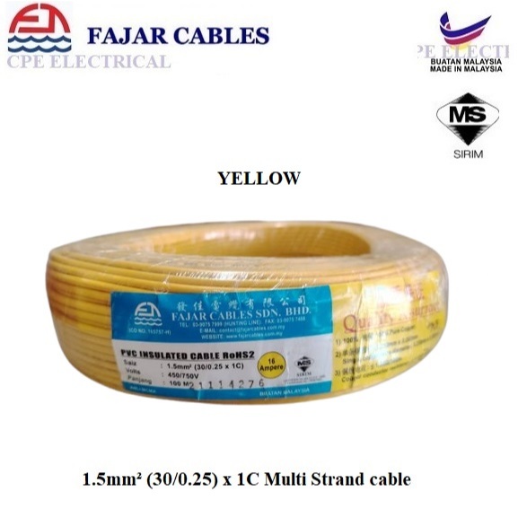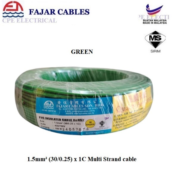Fajar 1.5mm (30/0.25) X 1C Multi-strand PVC Insulated Flexible Cables - 100M