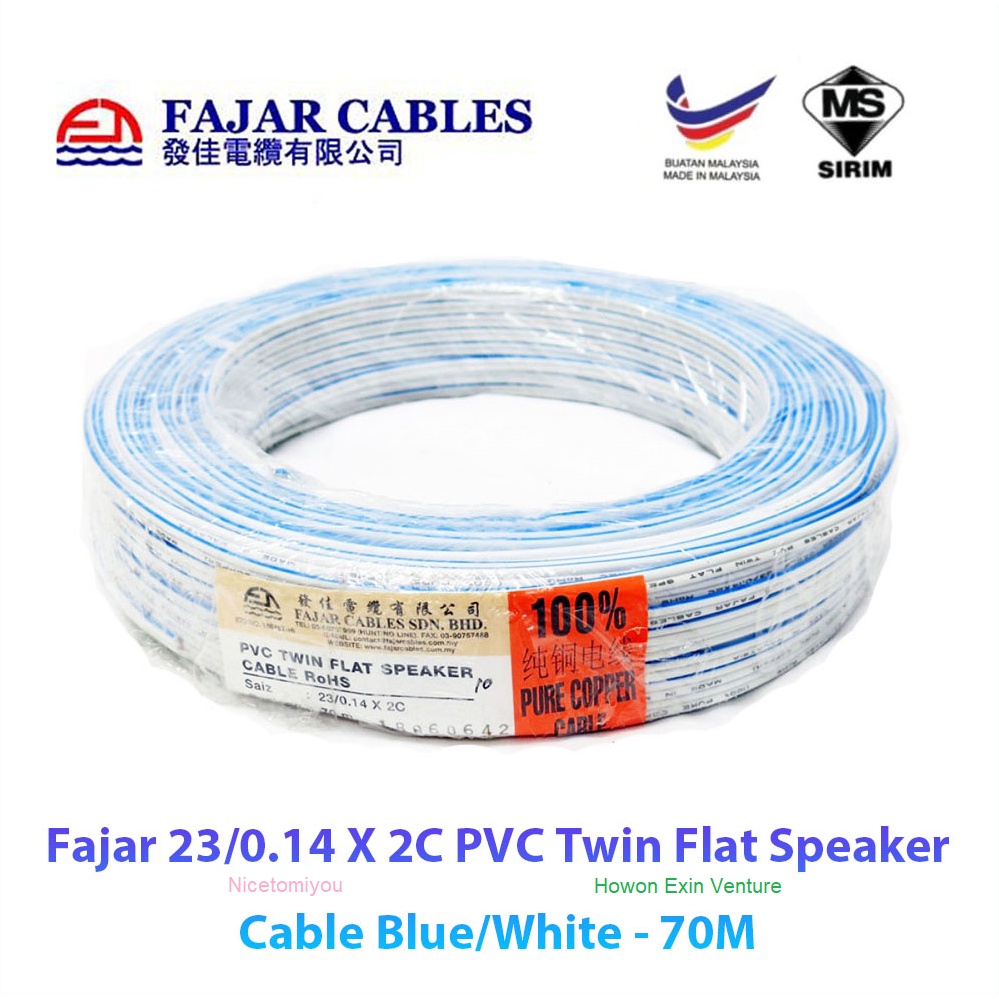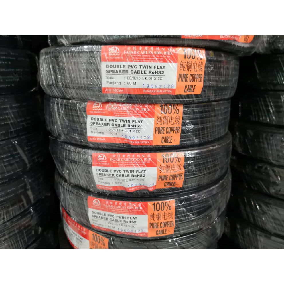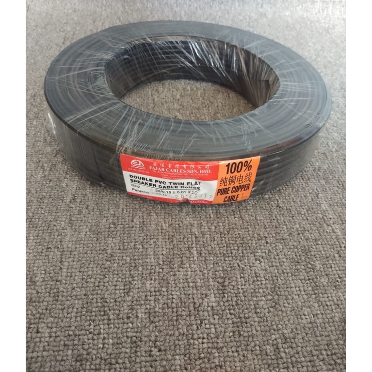 Fajar 23/0.15mm 0.14mm × 2c Double PVC VDE Twin Flat Speaker Cable - 80 Meter [SIRIM]