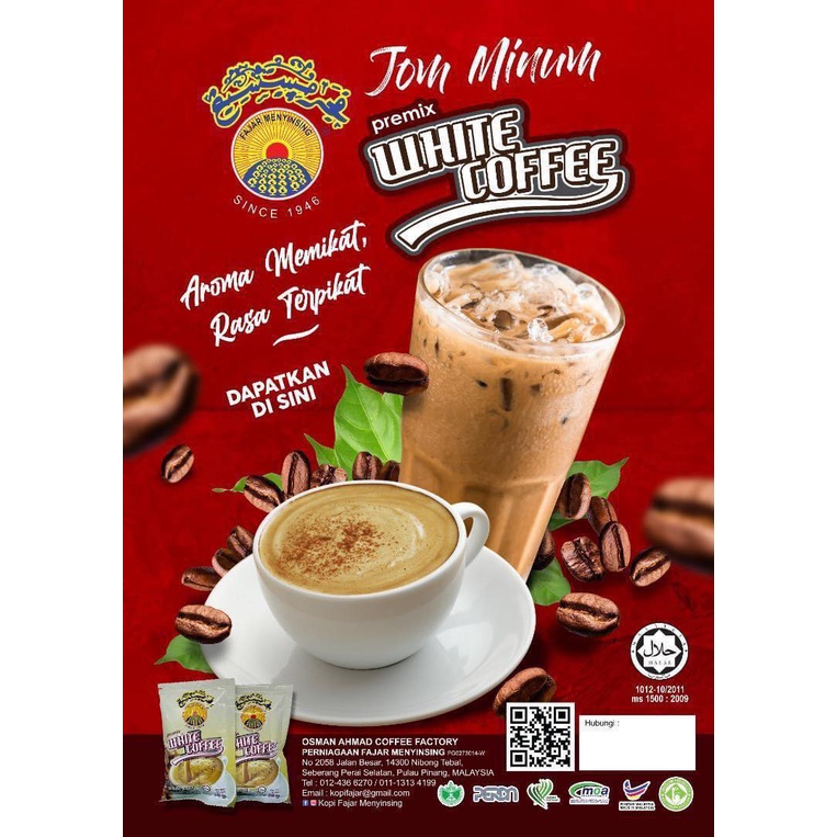 FAJAR - White Coffee 3 in 1(30g x 20 sachet) papan Kopi Putih 3 dalam 1 Mudah untuk hidangan