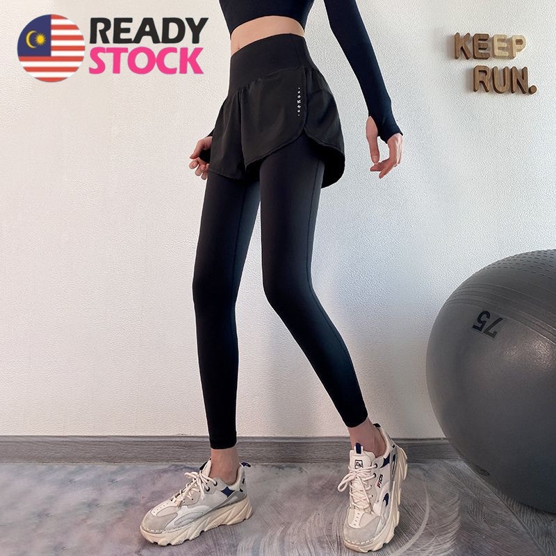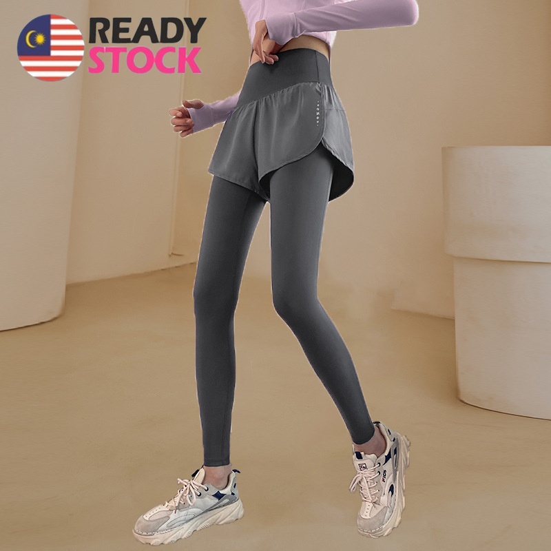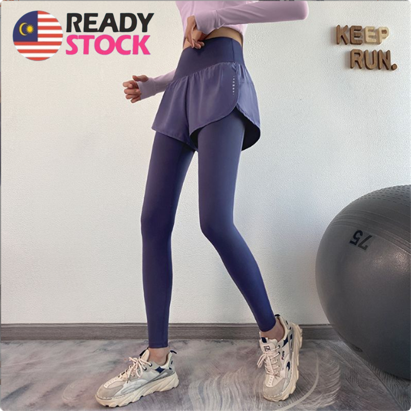 Fake Two Piece Fitness Pants Women's High Waist Elastic Tight Running Pants Quick Drying Sports Pants Yoga Pants Show Slim Weight Sun Sports