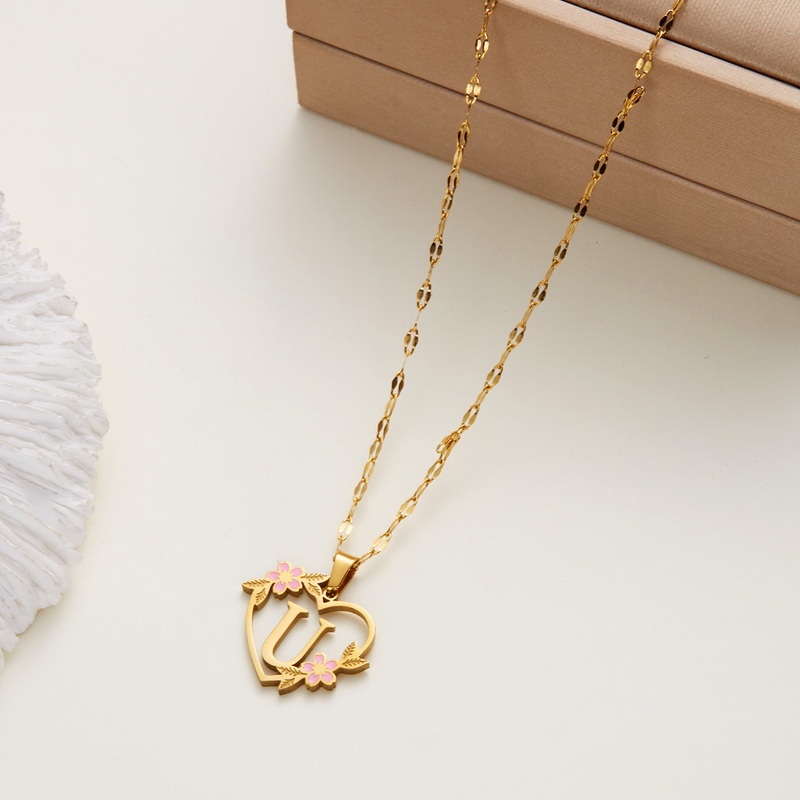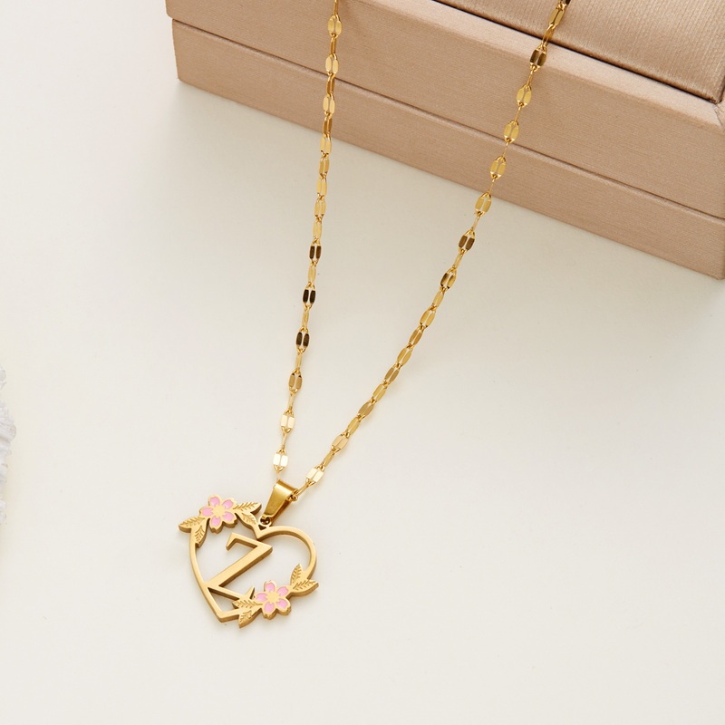 Fashion Stainless Steel 26 Letter Alphabet Flower Heart Pendant Necklace Jewelry Birthday Party Gift For Women