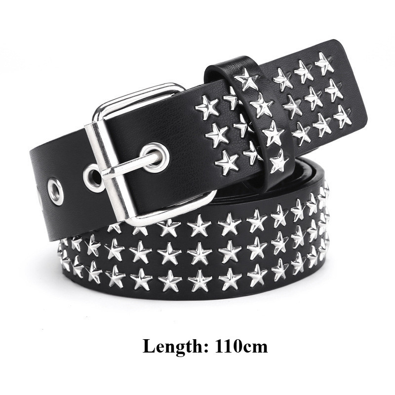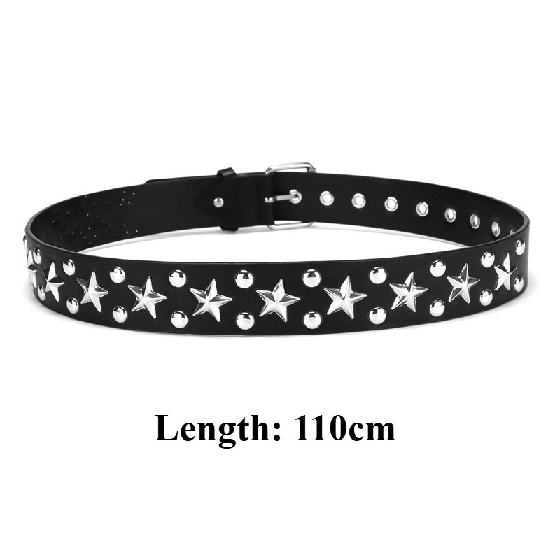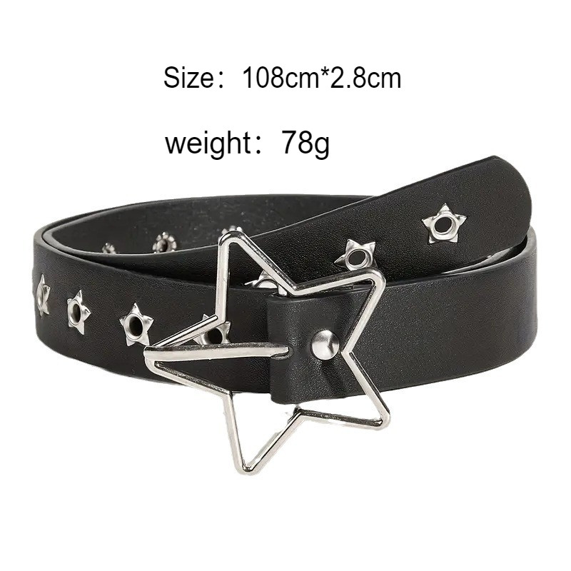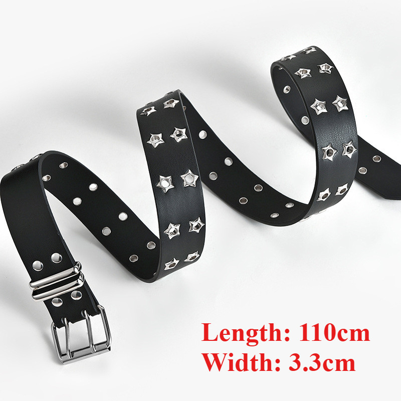 Fashionable Punk Square Rivet Leather Belt for Women Men Y2K Hollow Star Buckle Pants Wearing Accessories