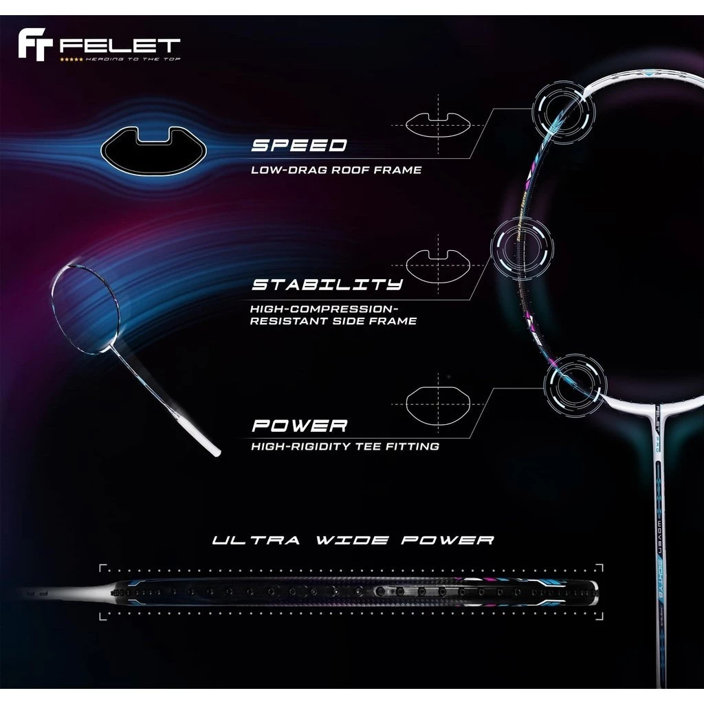 FELET Woven Eighty 8 — Ultra Wide Power, Nano Booster Shaft, 3U/4U comes with box and free grips and strings
