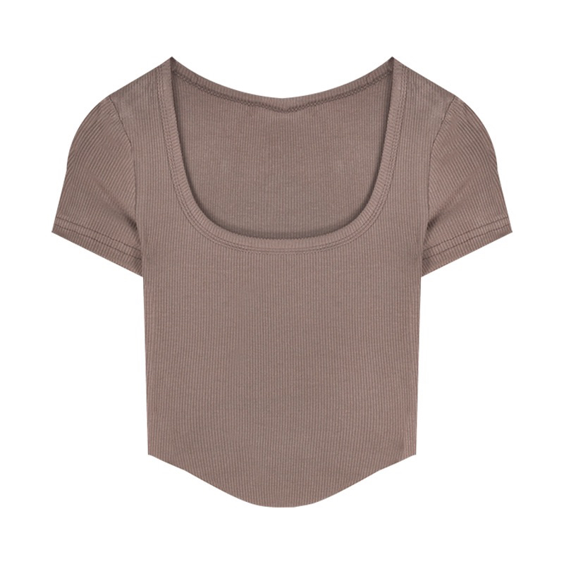 【Felynn.My】Women's Irregular 6718 High Waist Sexy Short T-Shirt T-Shirt Tight Slim Short Sleeve Top crop top