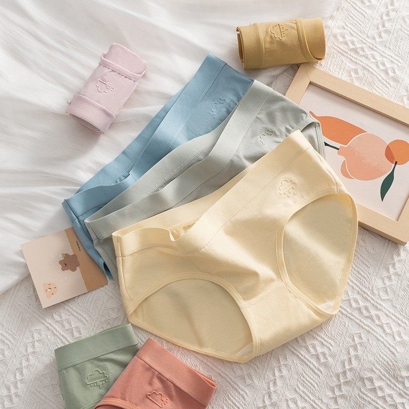 FINETOO Pure Cotton Panties for Women Middle Waist Japanese Underwear Breathable Minimalist Brief
