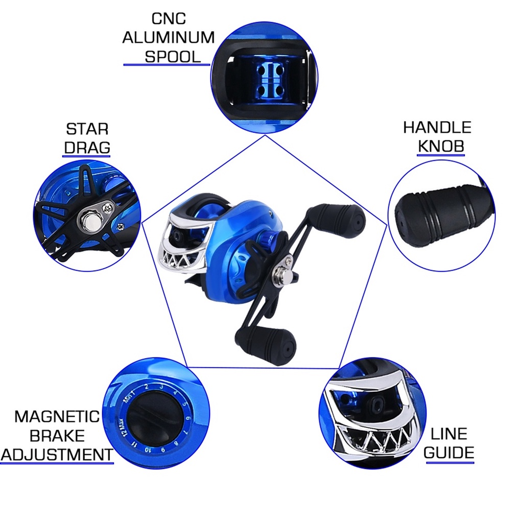 Fishing Set Fishing Rod Fishing Reel Combo 1.6/1.8m Carbon Casting Fishing Rod M Power 18+1BB Baitcasting Fishing Reel