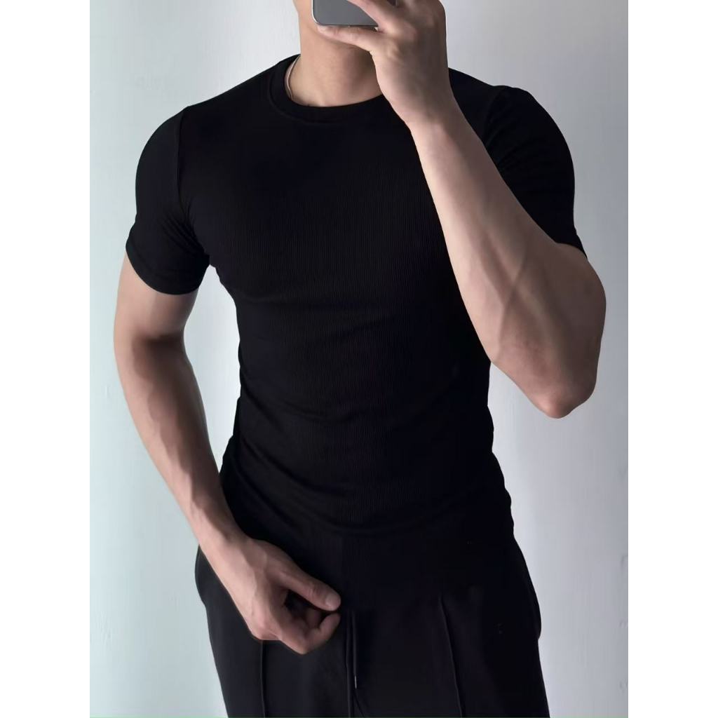 Fitted Tshirt Knitted Plain Unisex Stretchable Good Quality Gym Attire Very Comfy (M , L ,XL)