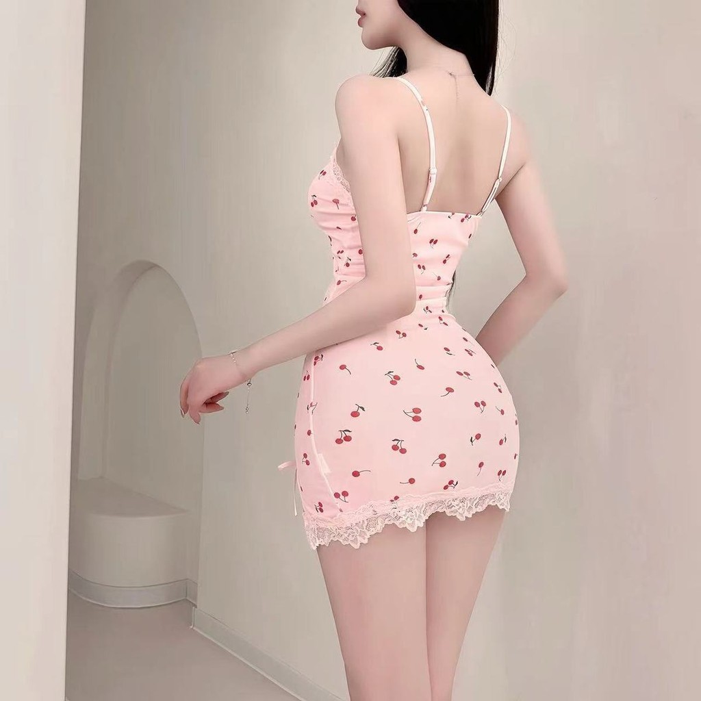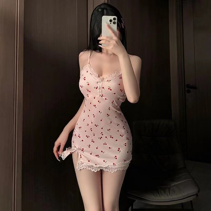 Floral Lace Lace Sling Nightdress Short Skirt Pajamas (with Chest Pad)