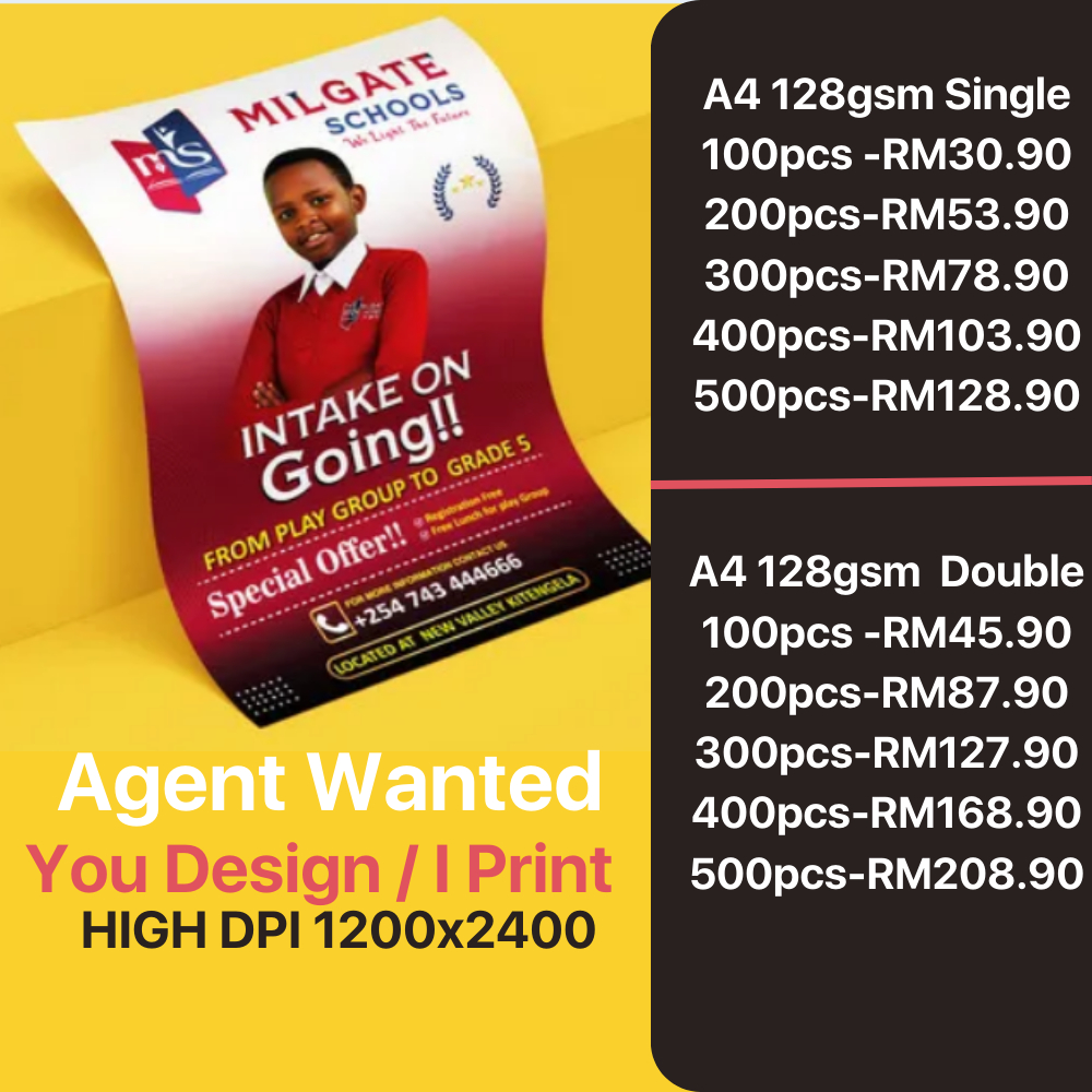 Flyers Printing A4 128gsm Flyer Cetak Art Paper Murah Colour Digital Printing 1 Side Print | 2 Side